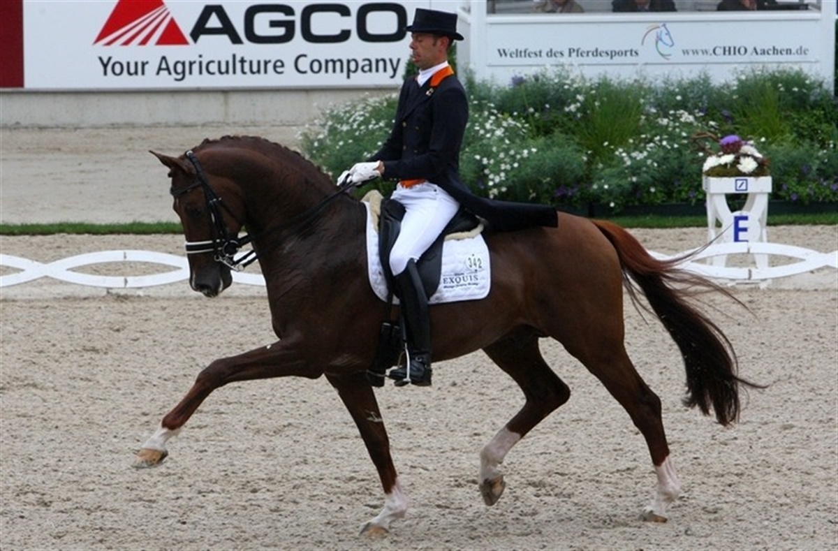 Ejlersgaards flotte Fürst Heinrich-søn Famaso var Andreas Helgstrands veloplagte partner i CHIO Aachens allerførste dressurklasse i eftermiddag. Ekvipagens overbevisende ridt blev belønnet med 72,342% og personligt var jeg mest enig med dommer ved B, HC Mathiessen, der havde vinderen Steffen Peters/Weltino’s Magic nede på en fjerdeplads og altså Andreas Helgstrand som vinder. Helgstrand blev i placeringsrækkefølget efterfulgt af de herrer Edward Gal og Hans Peter Minderhoud med henholdsvis hingsten Voice og hingsten Vivaldi. Med 70,842% kom Sune Hansen og hingsten Blue Hors Rush Hour ind på sjettepladsen. Nathalie zu Sayn-Wittgenstein og Fabienne opnåede 64,974%.