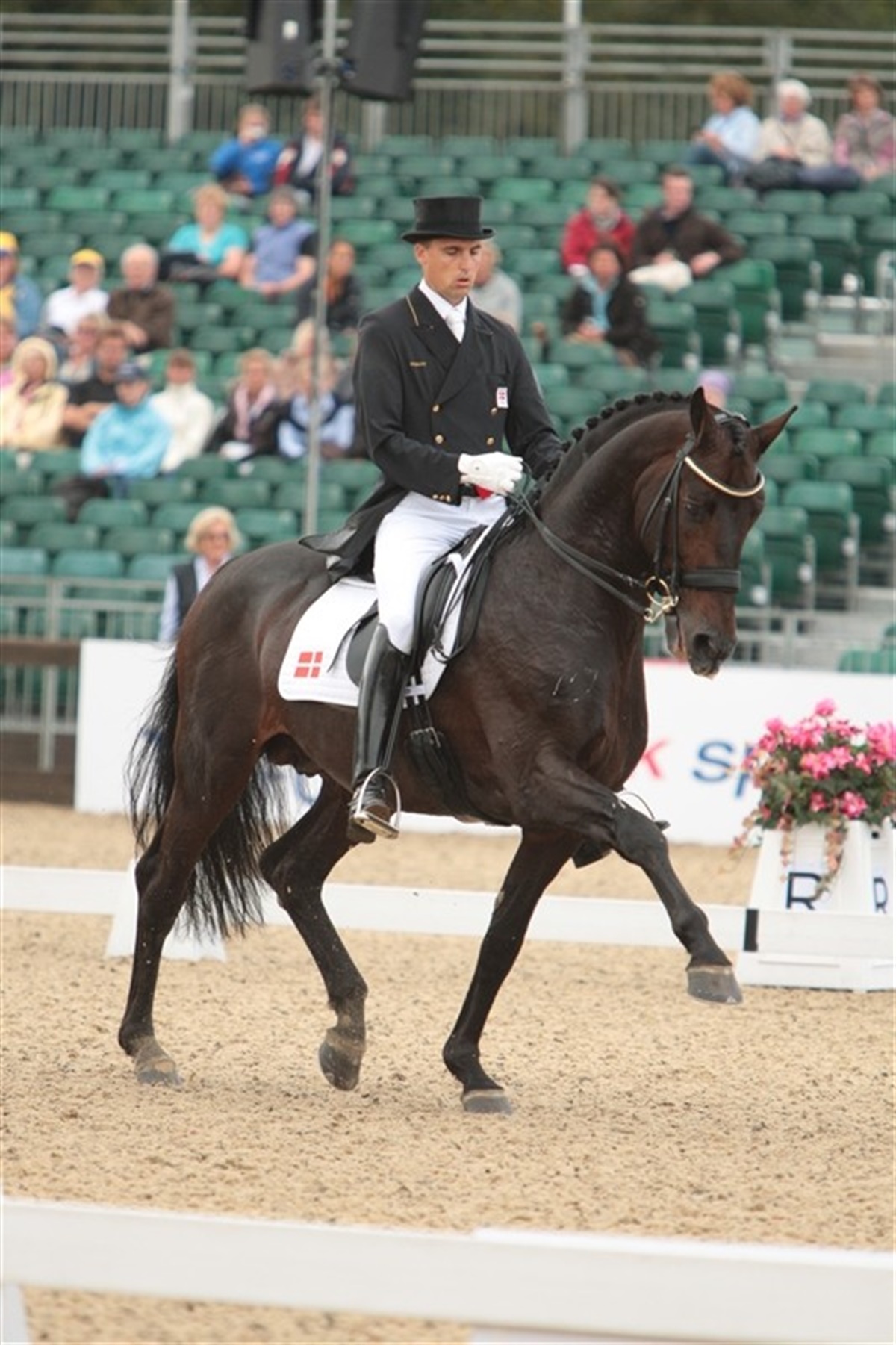 - Vi har alle redet op til vores bedste og det, man kan forvente af holdet på nuværende tidspunkt, men der har bare været nogle nationer, som er bedre lige nu, var Andreas Helgstrands vurdering efter sit ridt som 3. mand på det danske landshold, et fejlfrit ridt, som af dommerne blev vurderet til knap 71% - Jeg er godt tilfreds med mit ridt i dag, der er mange flere points at hente på den hest, men det er kun hans 4. Grand Prix, så på nuværende tidspunkt i hans uddannelse er jeg godt tilfreds med resultatet, forklarer Andreas. Det har været lidt vanskeligt for ham at finde ud af præcist, hvordan hingsten skal trænes og opvarmes forud for konkurrencerne, deres samarbejde er endnu for nyt, til at det er helt på plads. - Jeg troede efter stævnet i Aachen, hvor jeg følte, det gik rigtig godt, at nu havde vi fundet ud af det, men så var jeg ikke tilfreds med, hvordan han gik til DM. Her i Windsor føler jeg, at vi nu er på rette vej igen, men sådan er det, når man overtager en hest fra en anden rytter, det tager tid at finde ind til den, fortæller Andreas. Andreas fortæller også, at han stort set var tilfreds med hele sit program, at han nu stoler lidt mere på hingsten på banen, og nu er det mere et spørgsmål om at styrke hesten, for at den kan vise de kvaliteter, den har. - Den har en helt klassisk flot teknik i passage og piaffe, nu skal den blot styrkes og acceptere, at den skal blive stående i piafferne, understreger Andreas, der glædede sig over sine flotte serier. - Det er sjovt at ride Carabas inde på banen, og han arbejder helt ærligt derinde, forklarer han videre. Her hvor prinsesse Nathalie mangler at komme på banen ligger Danmark på en femteplads efter Holland, Tyskland, England og Sverige. Men det er tæt mellem Sverige og Danmark, mens Holland, Tyskland og England har skilt sig ud i medaljekampen.