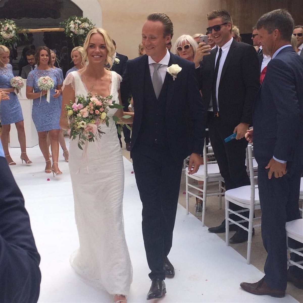 Parret, der sammen har børnene William på 3 år og Celine på 1 år, blev borgerligt viet lørdag eftermiddag i Finca Binionella, Camp de Mar i Andratx på Mallorca med omkring 100 gæster. I de meget smukke rammer var der efterfølgende middag under åben himmel i autentisk spansk stil - elegant, lækkert og afslappet.