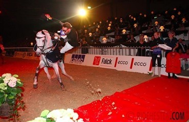 Andreas Schou red den 10 årige Quadrosson ask e. Quadros 3/ Carentan, og sammen gennemførte de hovedrunden, helt uden fejl. I omspringningen blev det desværre til et enkelt nedslag, hvilket betød at de endte på en flot 6. plads. Deres tid var ellers meget imponerende, og kun tre hundrededele fra vinderen, Piergiorgio Buccis tid. Se resultater her.