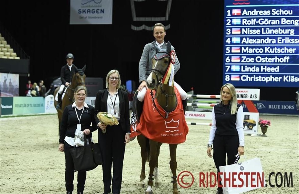 Så var der jubel og klapsalver fra publikum. Sidste rytter og sidste dansker manglede at komme på banen. Det var Andreas Schou, og han gjorde det! Alt flaskede sig hele vejen rundt. Vendingen til den tredjesidste gav godt nok publikum lidt nerver på, men ellers var tempoet højt hele vejen og Eurvette O sprang eminent. Da Andreas red fejlfrit igennem mål med dagens hurtigste tid, brød publikum ud i et jubelbrøl og klapsalver – ganske fortjent efter en fantastisk omspringning.