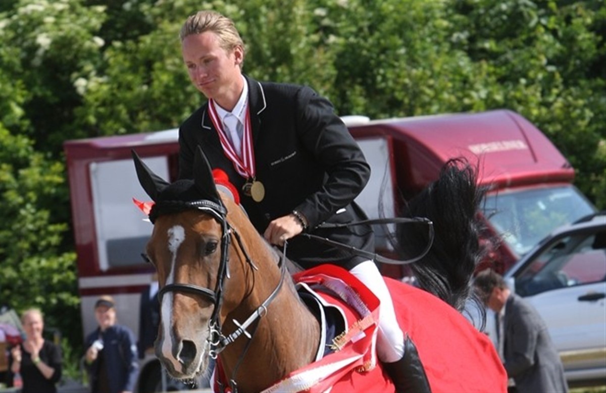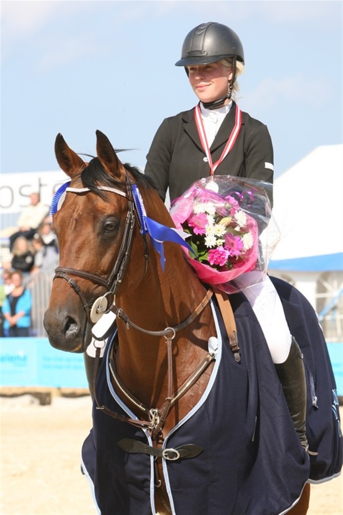 Finalen i det danske mesterskab blev afviklet i strålende solskin i Middelfart foran et talstærkt publikum. Tina Lund og A-Dur R lå i front inden dagens finaler, men Andreas Schou og Uno's Safir lå lige efter med kun 1 fejl. I dagens første gennemridning red Andreas Schou et klasseridt på den kun 8-årige hingst, der kvitterede ved at springe stort og fejlfrit på forhindringerne. Tina Lunds A-Dur R satte et ben i vandgraven, og dermed var der pludselig byttet om på rækkefølgen i toppen. I den afgørende springning var Tina fejlfri indtil trekombinationen, hvor A-Dur R, der er noget urutineret på dette niveau, standsede og efterfølgende fik et nedslag. Dermed lå presset på Andreas Schou, som valgte at ride en rolig runde uden at lade sig presse af tiden, men også han fik et nedslag i trekombinationen, men han og Uno's Safir klarede sig gennem banen med 5 fejl, og det var nok til at sikre sejren. Karina Rie Truelsen og den 10-årige avlshingst Lord If de Chalusse viste stor sikkerhed og stabilitet under hele mesterskabet, og med et enkelt nedslag i dagens første runde og en fejlfri anden runde sikrede hun sig sølvmedaljen i det danske mesterskab. Der måtte omspringning til om bronzemedaljen, idet Tina Lund og Kim Henriksen begge sluttede mesterskabet med 13 fejl. Kim Henriksen og Gørklintgårds Montana var først ude, og de leverede endnu en flot og fejlfri runde i tiden 34,98 sekund. Tina Lund vidste dermed, at hun skulle matche Henriksens 0-runde for at opnå medalje. Det gjorde hun, og hun standsede uret på 33,66 sekund, og dermed fik hun bronzemedaljen i hus.