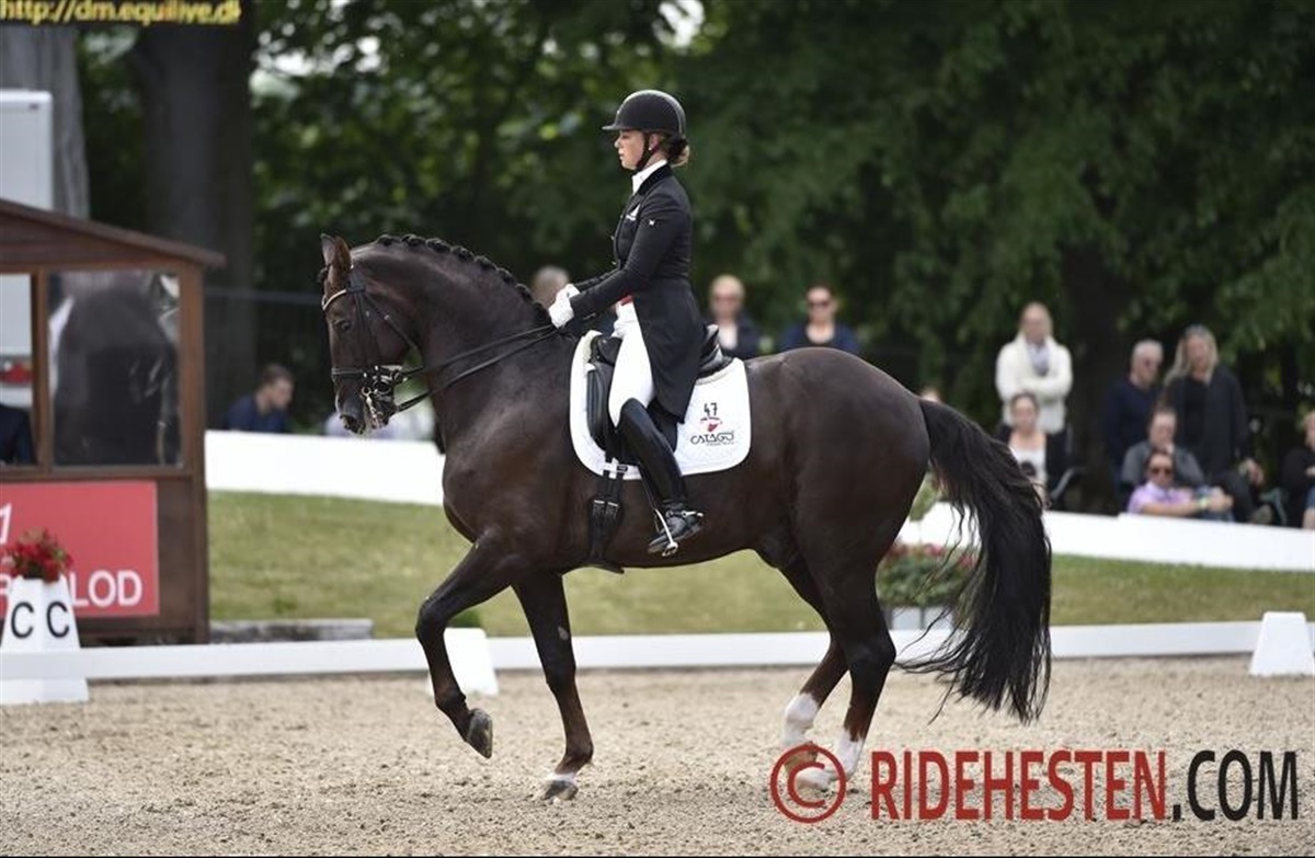 Donnperignon har holdt en uges tid fri efter DM på Broholm, og så satte Anna ham igang igen med et konditionsprogram. Den 17-årige erfarne herre skal ikke terpes i øvelser, men holdes i humør samt løs og smidig i kroppen. Humøret fejler ikke noget. - Pepe bukker rundt i træningen, og det bliver lidt vildt nogle gange. Det skal han altså lade være med, fortæller Anna for forleden dag var han tæt på at "tabe" hende inde i ridehallen.
