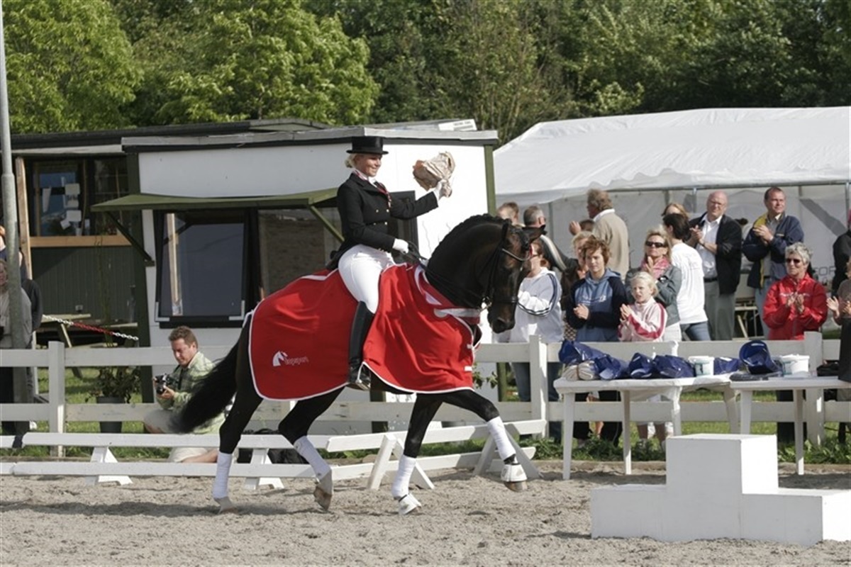 Den regerende danske mester for ungryttere, Anna Kasprzak, viste endnu engang sit værd med den velgående Blue Hors Future Cup e. Florestan I. Parret lå knap 10 point fra den hjemvendte avlshingst Bernstein DVH 696 e. Banditentraum og hans nye rytter Anne K. Elkjær-Holm i gårdsdagens 1. afdeling af ECCO Cup finalen. I dag viste de så deres styrke og vandt med en samlet score på 142,750%. Sofie Jeppesen og Hedebo´S First As e. First Flair R, avlet af Hans og Jürgen Brodersen, blev nr. 2 med 138,250% og Anne K. Elkjær-Holm måtte med sin smukke hingst Bernstein i dag nøjes med en samlet 3. plads i ECCO Cup'en med 137,667%. Se alle resultater fra weekendens stævne på Sportsrideklubben Vallensbæks hjemmeside - følg linket i højre side.