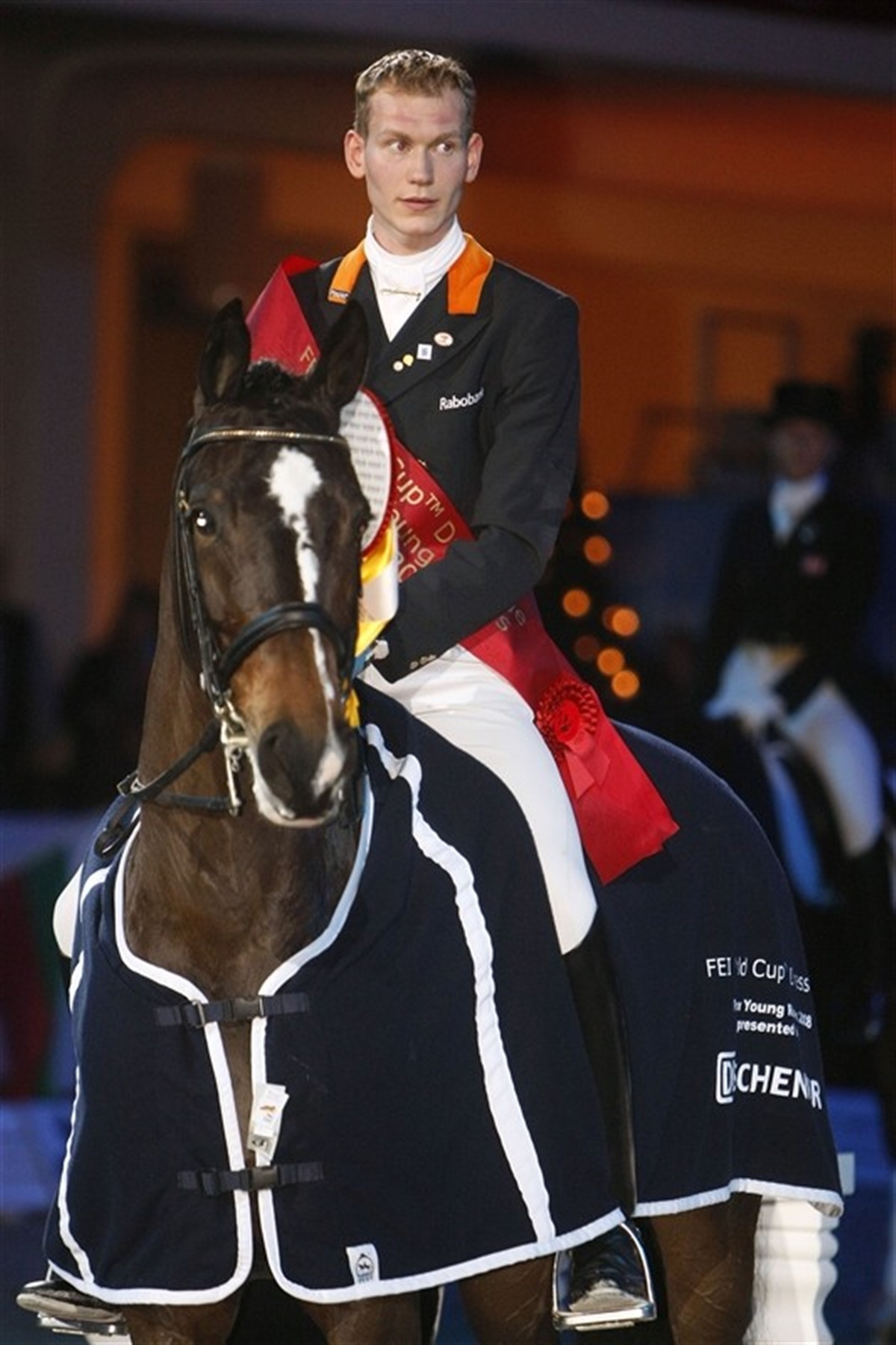 Anna Kasprzak og hollandske Diderik van Silfhout har haft et tæt løb i denne Wolrd Cup Finale for ungryttere. I fredagens Prix St. Georges var det kun få points der skilte de to ad, hvor Kasprzak lagde sig flot ind på andenpladsen. I Dag var Diderik van Silfhout til gengæld lige en tand bedre og med Ruby vandt han den endelige finale i ungrytternes World Cup. Det samlede resultat for hollandske Silfout og Ruby blev 74,950 % og med titlen som World Cup Champion 2008 følger også 2.000 Euro. Med en samlet score på 73,550 % i küren finder vi som sagt danske Anna Kasprzak og Blue Hors Future Cup på en super fornem andenplads. Hvilket jo bestemt ikke er dårligt i denne eftertragtede World Cup Finale. Anna Kasprzak modtog også 1.600 euro for sin flotte præstation med Blue Hors hingsten. Tredjepladsen gik til den franske ungrytter Lion Antoine og Concerto med 71,050 %.