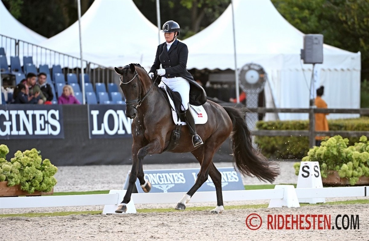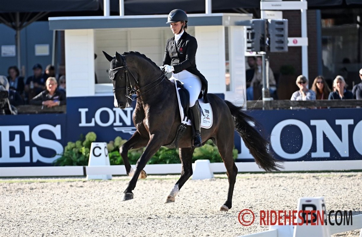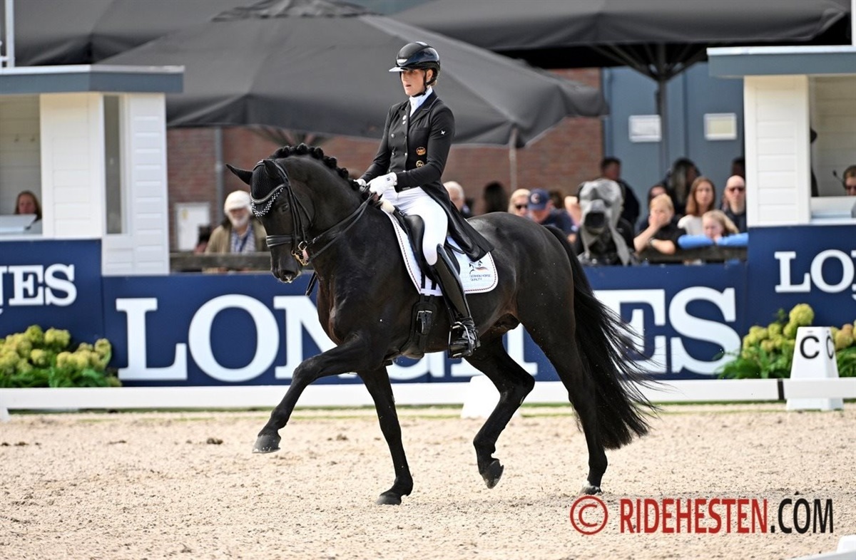 Den danskavlede oldenburgerregistrerede hingst, Global Player e. Grand Galaxy Win/ Blue Hors Don Schufro (opdr. Henrik Hansen), der sidste år vandt guld under tyske Eva Müller, bliver nu redet af en anden tysk Helgstrand-rytter, nemlig Leonie Richter, der gør et fremragende job og har adskillige heste kvalificeret til finalerne.