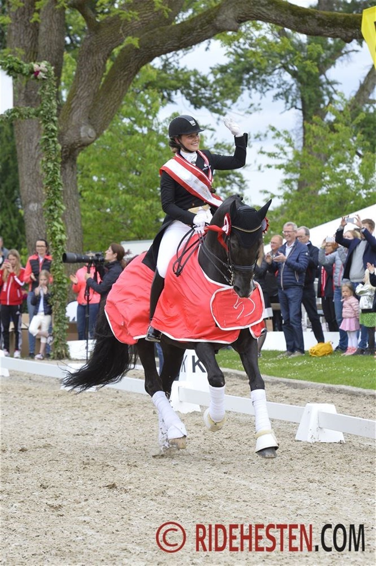 - Det er fedt at stå her igen som Dansk Mester, sagde Anna Kasprzak, der i 2013 blev seniormester, sidste år vandt hun U25 og igen i år er hun mester for seniorer. Hun fortæller, at hun nyder at ride på Broholm, ikke mindst på grund af den store opbakning fra publikum. - Det er stort, sagde hun. Donnperignon har været småskadet og derfor har Anna ikke kunnet træne ham intensivt i mere end tre uger op til mesterskabet. Han har naturligvis været genoptrænet over længere tid, inden han blev sat i mesterskabstræning, og så fortæller Anna, at en del af hemmelighedne bag hans muskuløse udseende, og gode kondition skyldes det vandløbebånd hun har investeret i. Det nyder Pepe at arbejde på, så får han brugt sin energi uden det slider på benen. Alligevel bemærker hun, at tre dages intensiv konkurrence på dette niveau er hårdt for hestene, så hun så gerne at mesterskabet kunne afvikles over to runder, som det er tilfældet i fx Sverige og Tyskland.