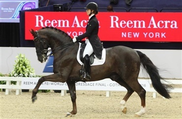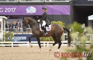 Hun ligger nr. 20 på verdensranglisten, Anna Kasprzak fra Danmark. Med sin nu 17-årige Donnerhall-søn Donnperignon scorede hun i den indledende Grand Prix ved World Cup-finalen i dressur 74,729%. Det var et program med mange flotte højdepunkter og ind imellem småting, der trak resultatet nedad. Ingen tvivl om, at Anna Kasprzak kan blande sig i kürfinalens top tre på søndag.