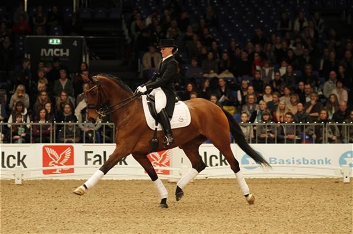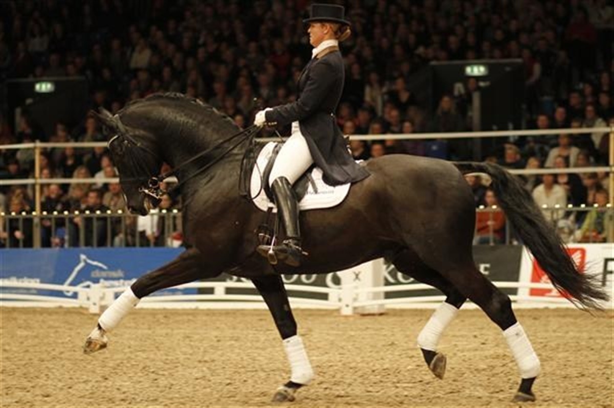 Med ørene spidsede og opmærksomheden samlet som sin rytter gled De Noir e. De Niro let og elegant fra den ene øvelse til den anden i KPMG Prix st. Georges. Da Anna hilste af efter et fejlfrit program sank hendes skuldre i et lettelsens suk og lænede sig frem for begejstret at klappe hingsten på halsen for veludført arbejde. Hendes glæde fortsatte i udridningen, hvor De Noir fik adskillige klap på halsen mens publikum jublede. Den elegante og letfodede hoppe Lantana Tågerup e. Solos Landtinus kilede sig ind på andenpladsen med 69,12% flot redet af Anne Sofie Damgaard Jensen. På tredjepladsen fulgte endnu en sort avlshingst Uno Don Diego e. Dressage Royal redet af Ditte Mikkelsen. Også det pars samarbejde er nyt, men sammen leverede de et flot og sikkert travprogram, mens et par små kiks i galopprogrammet kostede en mulig topplacering. De opnåede 68,95%