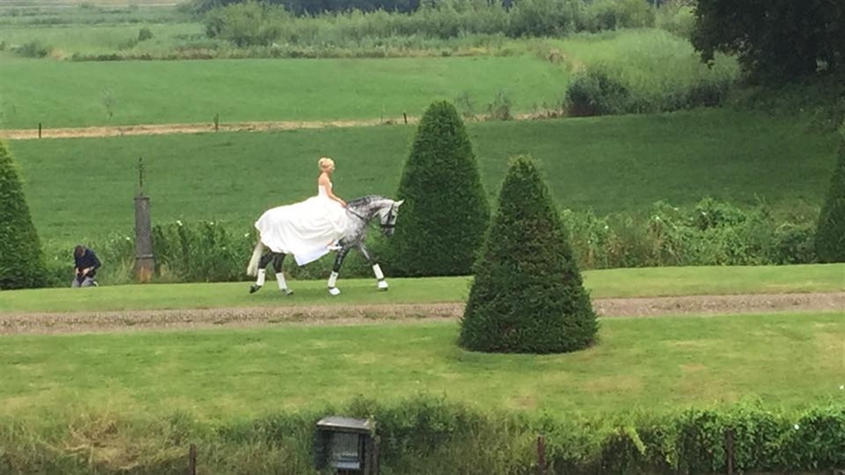 Anna og Will sagde ja til hinanden i Holland i lørdags. Ved bryllupsfesten, der blev holdt på et slot, var der også dansk deltagelse - bl.a. af den danske sølvmedaljehoppe Tørveslettens Quattro e. Quaterback/ Carano (opdr. Pernille og Steen Rugaard), der ledte Anna sikkert frem.