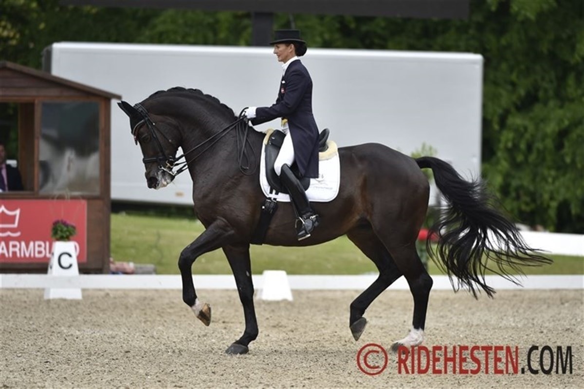 Mikala Münter Gundersen og My Lady avancerede i dag med et flot program, hvor My Lady konstant lå mellem 7 og 8 points for sine øvelser lige indtil de 15 etterchangementer - der blev kun 13. - Jeg gik og drillede Daniel med at han ikke kunne tælle til 15 (i gårsdagens Grand Prix lavede han samme fejl) og så gør jeg det selv i dag, fortalte Mikala efter sit ridt, der gav hende en andenplads i klassen med 72,255% og en andenplads i den samlede stilling. Anders Dahl og Wie-Atlantico de Ymas red et flot program i dag med et par små fejl og en score på 70,588% Mesterskabsdebutaten Alibi D og Sidsel M Johansen avancerede til en 5. plads i dagens klasse med 70,039% efter et især flot travprogram.