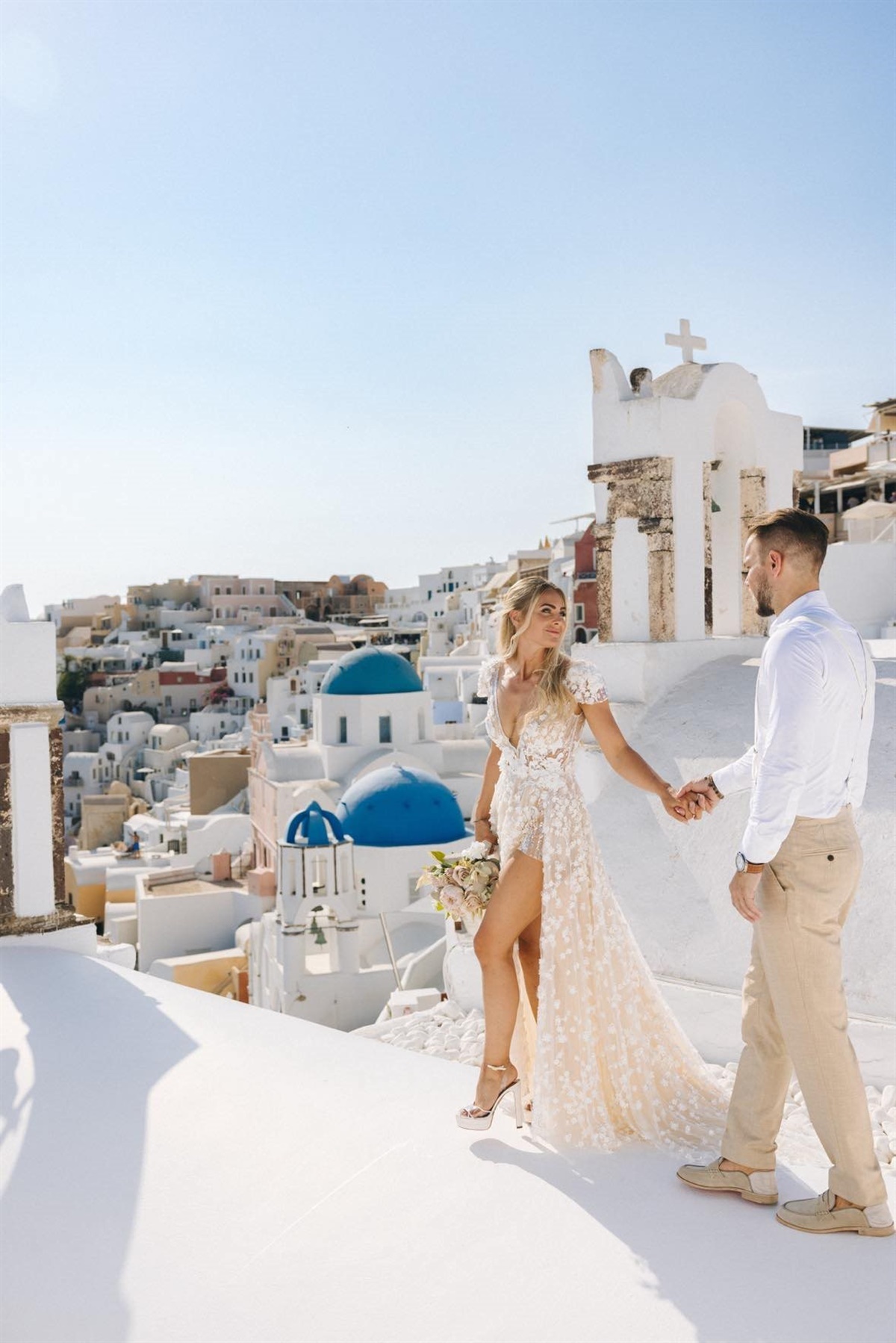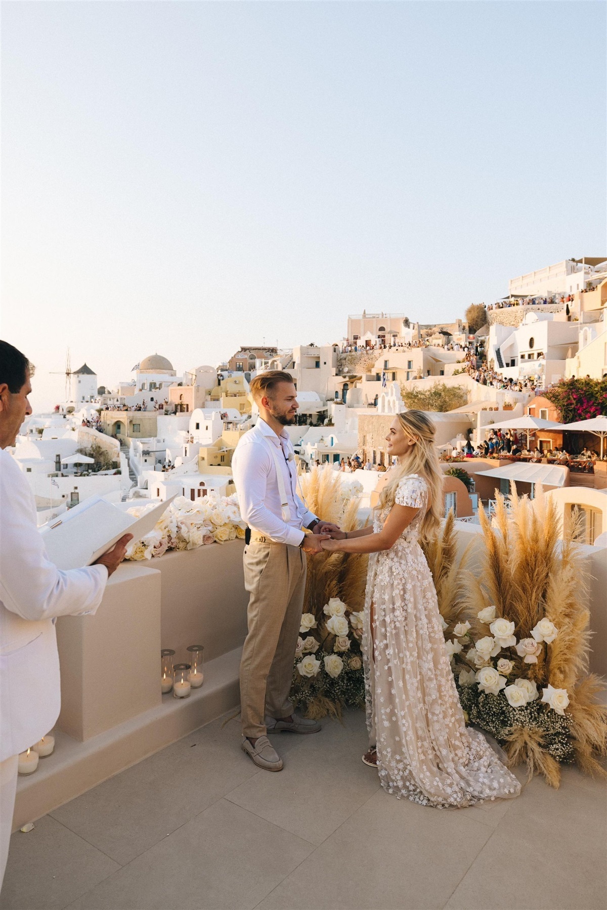 Anna og Thomas blev gift ved et smukt bryllup på den græske ø Santorini. Her fejrede brudeparret deres bryllup og nye status som ægtefolk. Det gjorde de omgivet af deres nærmeste venner og familie.