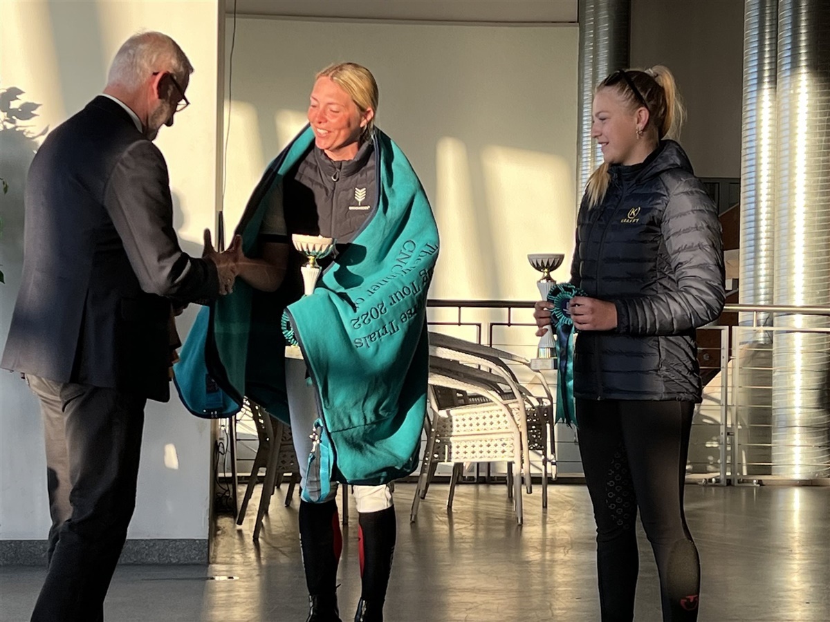 På andenpladsen blev det Caroline Larsen med Allerupgaard Fantastique. De red til 74,13% i dressuren, hvilket betød at de lagde sig ind efter Anne Dorthe med 25,9 i straf. På springbanen blev det til en fejlfri tur, og igen i terrænet kom de fejlfrit rundt. Det blev derfor de danske flag der røg til tops gange to, i den højeste nationale klasse.