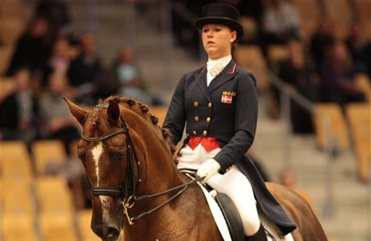 Det blev til en rigtig flot præstation fra den eneste danske ekvipage ved ungrytternes World Cup finale i Frankfurt. Torsdag blev den første finaleklasse redet, og danske Anne Katrine Elkjær-Holm red sig til en flot fjerdeplads på den tidligere kårede avlshingst, den 13-årige hannoveranervallak Bernstein e. Banditentraum. Ekvipagen præsterede til 68.789%, en enkelt dommer vurderede endda deres ridt til over 70%. Vinder af klassen blev hollandske Lotje Schoots på Torricelli med 70.842%, nr. 2 blev tyske Kirsten Sieber på Charly med 70.368%, mens tredjepladsen gik til portugisiske Mafalda Galiza Mendes og D'Artagnan med 69.895%. I dag fra kl. 9.40 skal ungrytterne i ilden igen, og Anne Katrine og Bernstein starter som nr. 6. Find startlister og resultater via linket i højre side.