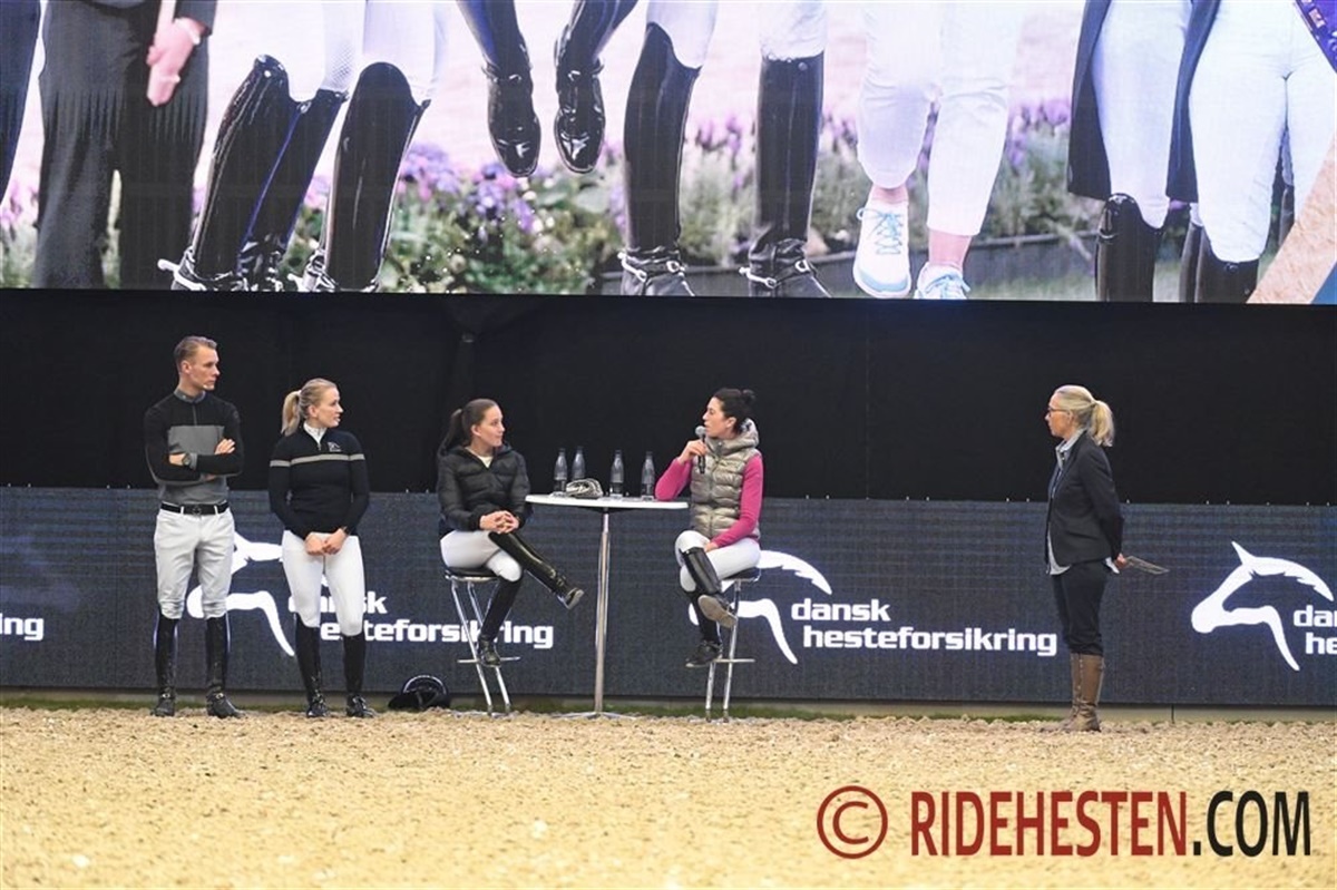I Jyske Bank Boxen blev der ved Dansk Varmblods Hingstekåring i Herning til aften afholdt clinic med de fire VM-holdguldvindere, Cathrine Laudrup-Dufour, Daniel Bachmann Andersen, Nanna Skodborg Merrald og Carina Cassøe Krüth.