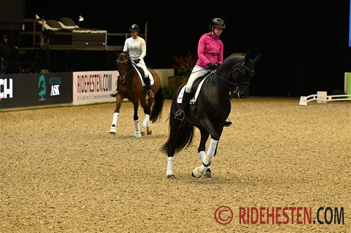 Herefter kom Nanna og Daniel ind på henholdsvis Blue Hors Monte Carlo TC e. Glock's Dream Boy/ United og Tilda MT e. Tailormade Temptation/ Lorentin I. De to lagde først og fremmest vægt på, at hestene skal spænde af inde i den store arena, og som Nanna så fint forklarede: – Monte Carlo er jo vant til, når han kommer ind i sådan en arena her, at han skal blæse afsted for at imponere en masse avlere om, at de skal bruge ham til deres hopper. Så i aften vil jeg bare gerne vise ham, at han godt kan spænde af og gå lidt mere roligt rundt, så det bliver mere træningsagtigt.