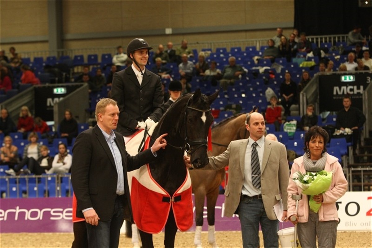 "UNO" Donna Unique e. Blue Hors Don Shufro vandt med Andreas Helgstrand i sadlen Unghestechampionatet i dressur med hele 940 point. Således slog Andreas Helgstrand sig selv med sin anden hest, den velgående Hønnerups Driver e. Blue Hors Romanov. Andreas fortæller selv, at han føler sig priviligeret med to så gode heste, og at han heller ikke var i tvivl om, at han sad på to topheste. "UNO" Donna Unique er avlet af Stutteri UNO. Hos springhestene blev hoppen Birkegårdens Chiquita e. Coronado, redet af Sarah Kroman Rosenlund, vinder af championatet med 861,3 point. Hos dommerne torsdag fik hoppen 8,5 hele vejen igennem, og hun fik af fremmedrytter Johnny Hansen 9 i både ridelighed og kapacitet. Nr. 2 blev L. Leth e. Lambrusco Ask med 857,5 point, og denne vallak scorede tre gange 8,5 af dommerne torsdag og et 9-tal i galop. Fremmedrytteren fortalte, at hesten er utrolig let at ride, og han belønnede den med et 9-tal i ridelighed og 8,5 i kapacitet. Kapacitetskarakteren var præget af, at hesten er meget stor og stadig mangler at blive helt færdig i kroppen. Læs alt om Unghestechampionatet i næste nummer af Ridehesten.