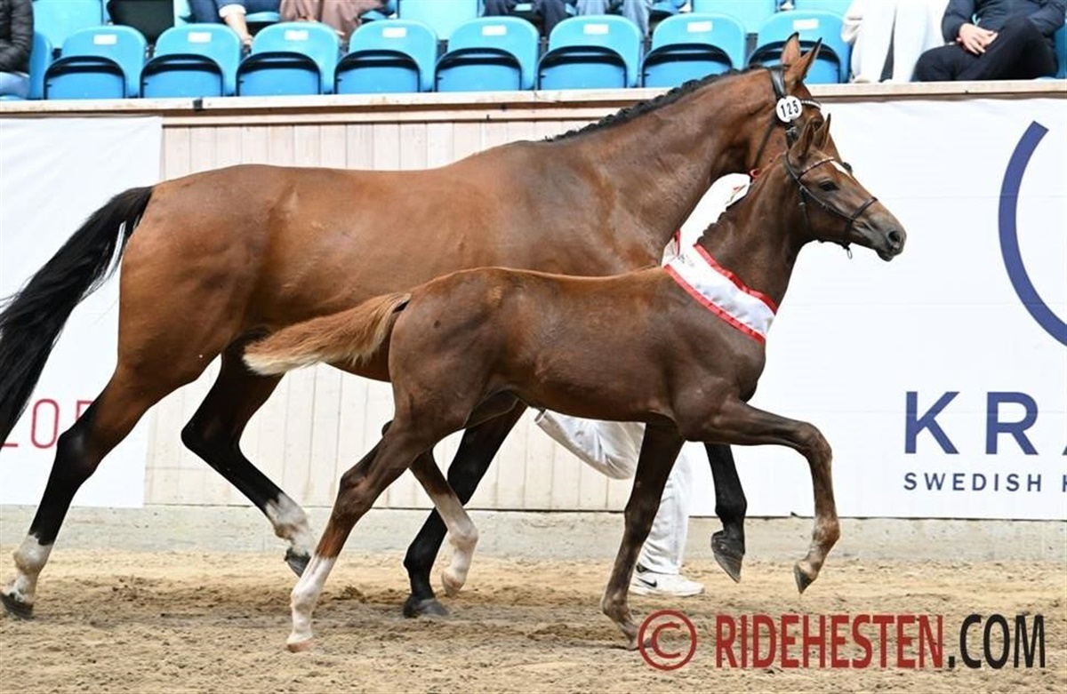 – Det er et utroligt velfungerende føl, der fremstår meget udtryksfuld og i meget morderne type. Han hvælver halsen flot og bruger sin overlinje med stor smidighed, når han sætter i bevægelse, lød nogle af ordene var avlsledelsens talsmand, Vicky Nortvig.