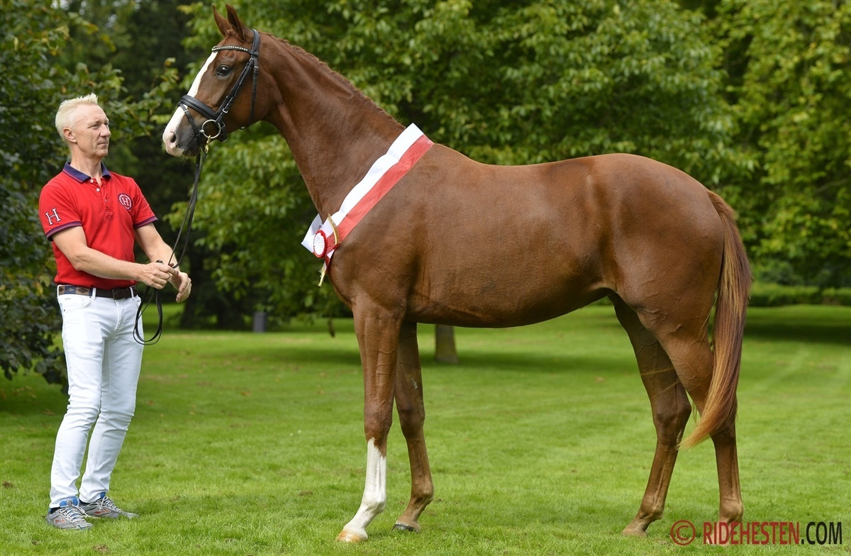 Revolution (WESTF) e. Rocky Lee/Rouletto opdrætter af Yasemin Yanik, Tyskland, og ejet af Helgstrand Dressage A/S, Søren Grønborg og Hanni Kasprzak.