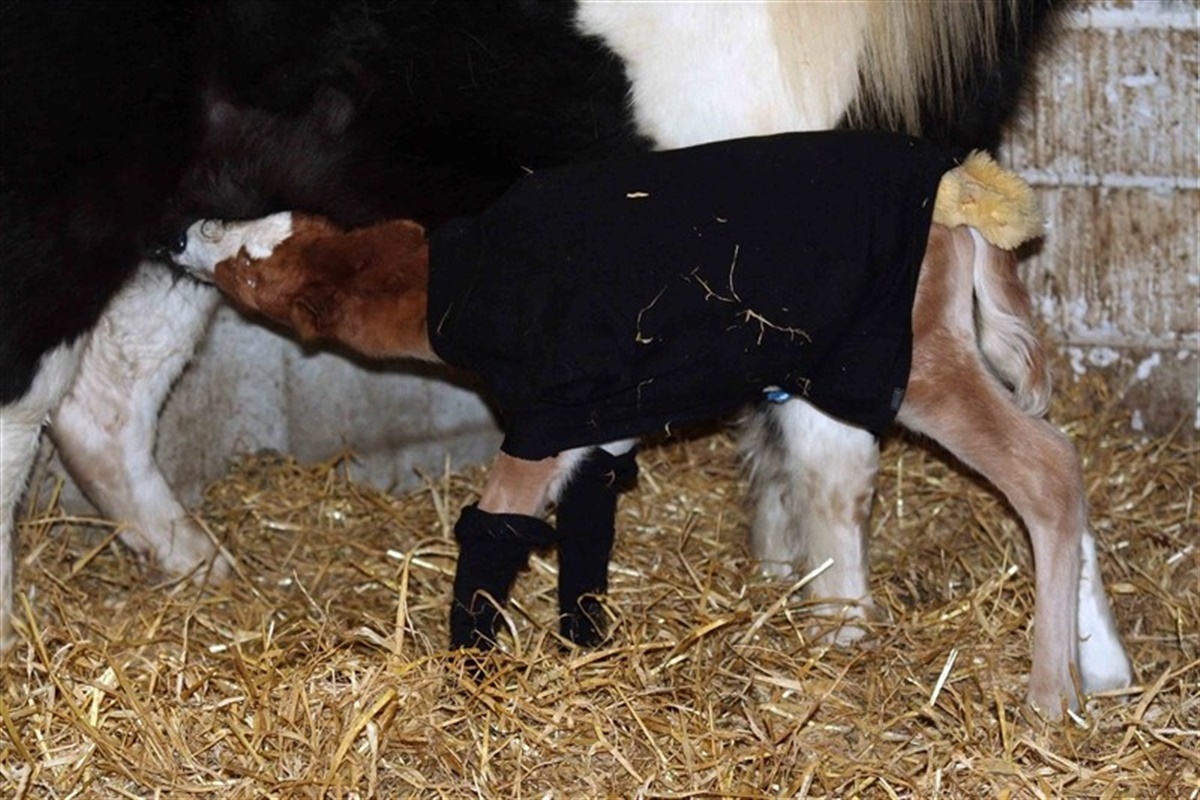 Miniaturehoppen Donago´s Duchess folede den 1. januar 2010 et rødt hingsteføl, der ikke var helt planlagt. Hoppen var forsøgt ifolet med en amerikansk miniturehingst importeret fra Frankrig og skulle i så fald fole i maj måned. En anden hingst har tilsyneladende været på spil og familien Godiksen kan nu konkludere, at det er welshhingsten Fiango W, der er far til føllet. Hingsten har aldrig været løs eller brudt ud af sin fold, så Duchess må selv have besluttet sig for at aflægge hingsten besøg og smutte tilbage til sin egen fold. Donago's New Years Surprise, der måler 59 cm, startede ud med at blive pakket godt ind i lammeskind og en højhalset sweater, hvis ærmer blev brug som benvarmere. - Nu har vi købt et hundedækken, som passer til ham, fortæller Dorte N. Godiksen.