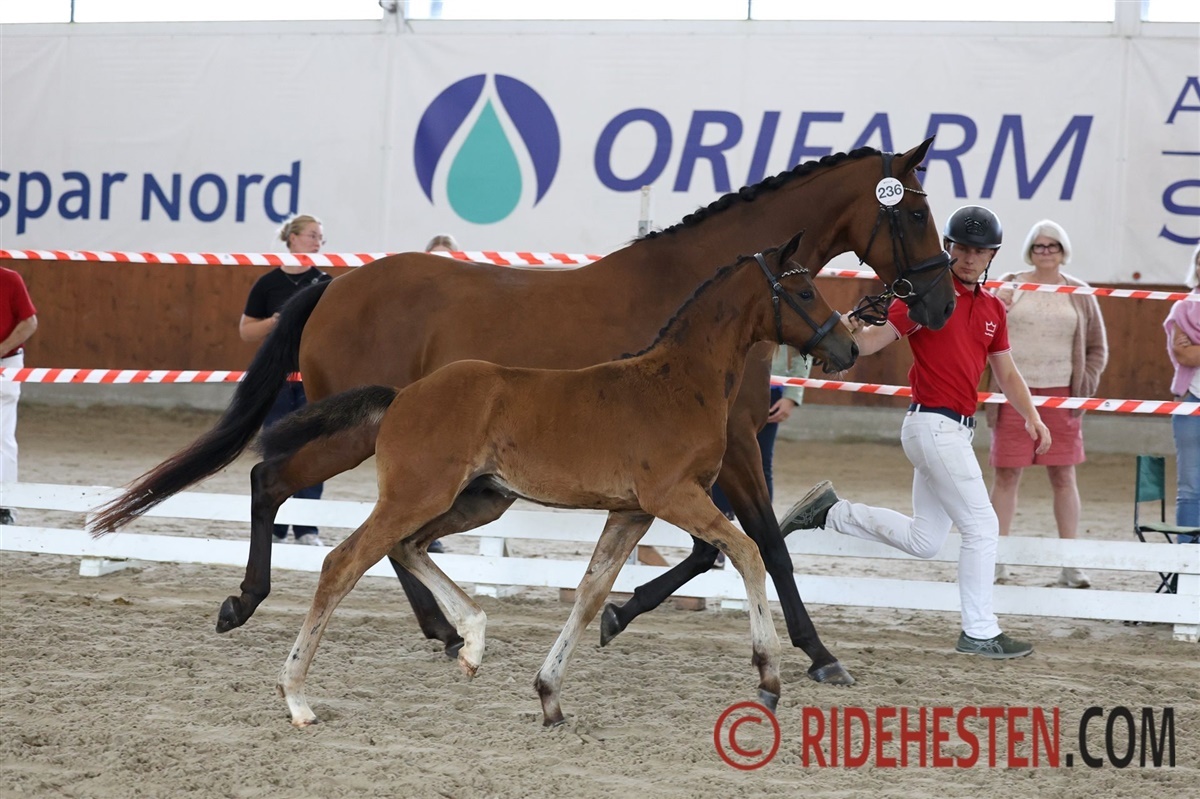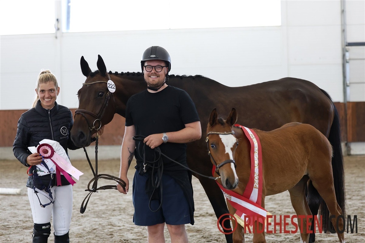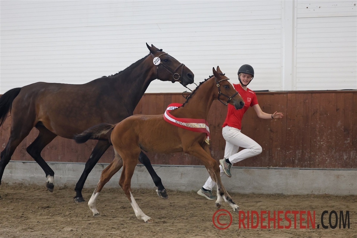 For de springbetonede hoppeføl var det kat.nr. 222 Terrevive Rah e. Tangelo Van De Zuuthoeve/ Clarimo (opdr. og ejet af Andreas Høiås), der tog sejren, imens kat.nr. 211 Dima’s Miss Perfect e. Bonaparte Z/ Heartbeat (opdr. og ejet af Ditte Moesgaard) blev udnævnt som reserve.