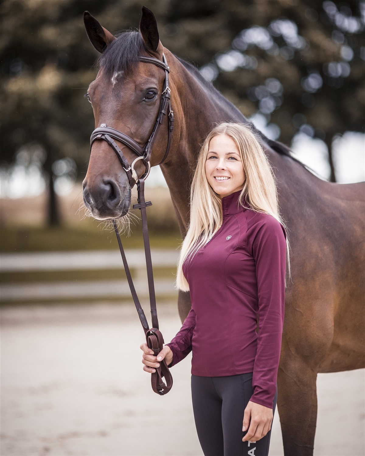 Facet-trøjen har også huller til tommelfingrene og en behagelig, høj halsudskæring, som holder rytterens hænder og hals beskyttet fra selv det mest ekstreme vejr. Som noget nyt iblandt Ariats trøjer til at have på inderst har Facet-trøjen også et ”urvindue”, som giver ubesværet adgang til dit smartwatch, imens du rider. Facet Base Layer-trøjen fås i en smuk palette af farver: Windsor wine, banyan bark og en elegant sort.
