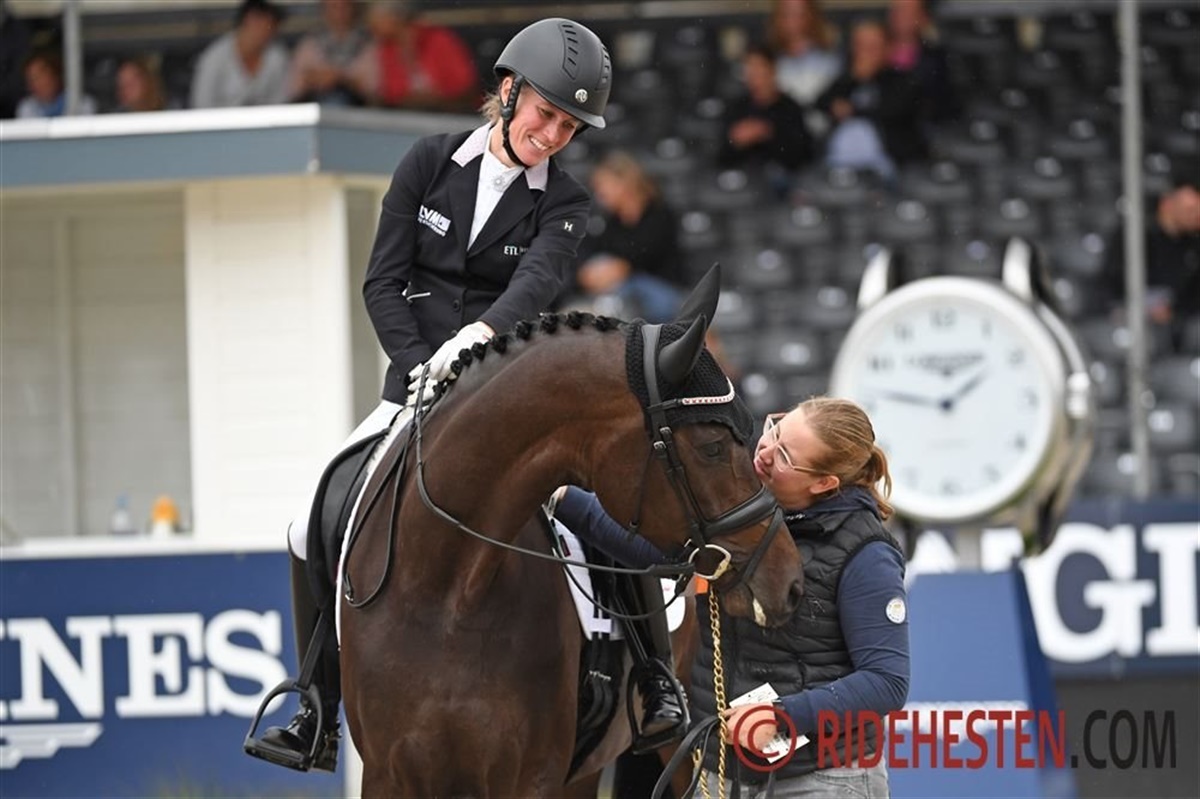 Sølvmedaljehoppe, helsøster til den tredobbelte verdensmester Sezuan og nu dobbelt UVM-finalist, Straight Horse Ascenzione e. BH Zack/BH Don Schufro (opdr. Straight Horse Aps) kvalificerede sig i formiddag med sin tyske rytter Helen Langehanenberg med en total score på 8,64 point fordel på bl.a. 9,8 for trav og 8,7 for kapacitet