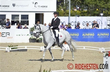 Med 9,10 vandt Astrid Gemal og Charmeur e. Crelido/Fernando mellemrunde øst af DRF-dressurchampionatet for 6-års heste idag i Holte Rideklub. Ekvipagen scorede intet mindre end 9,8 for skridt! Gørklintgårds Domello e. Diamond Hit/Lavallo blev med dagens højeste travkarakter på 8,7 og et snit på 8,74 redet ind af på andenpladsen af Mkæla Lindh. På andenpladsen fulgte Quite Lovely e. Quite Easy/Judex xx redet af Karin Nissen og med en sum på 8,56. Med 8,40 kom Annette Toft ind på fjerdepladsen med Santa Pietra e. Sandro Hit/Caprimond med 8,40. Se komplet resultatliste til højre.
