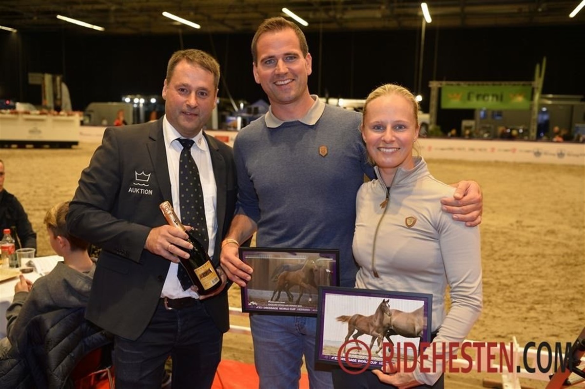 Blandt køberne til de 21 føl til DWB World Cup Foal Auction var der også smil og rosende ord til arrangementet. Aftenens dyreste føl gik til den østrigske dressurrytter Victoria Max-Theurer. For 20.000 euro (cirka 149.000 kr.) erhvervede den tidligere olympiske rytter sig det særdeles velgående hoppeføl Hesselhøj Ebay e. Escolar/Heselhøj Donkey Boy (opdr. Dorthe og Hans Jørgen Hoeck).