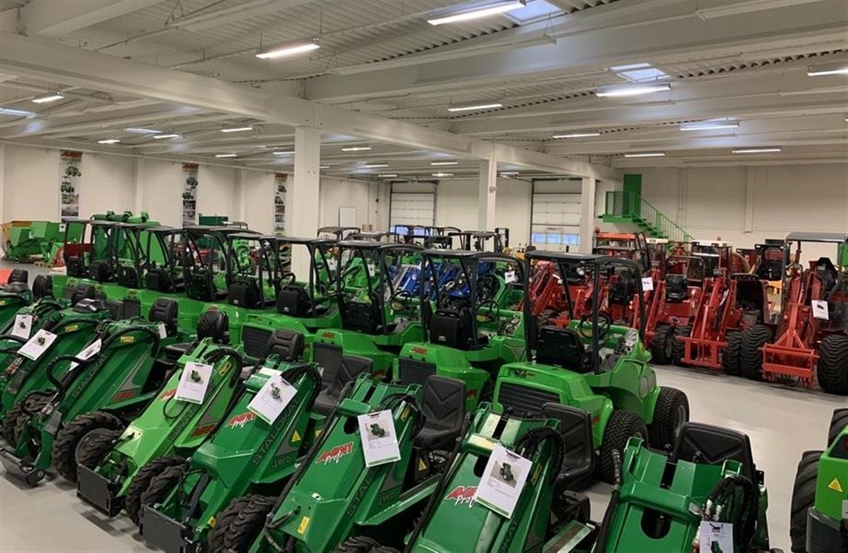 Det flotte showroom er at finde på Århusvej 12 i Låsby, hvor der ved siden af brugtsortimentet også er hele 8 Avant maskinserier og over 260 Avant redskaber at se og købe til AvanTek.