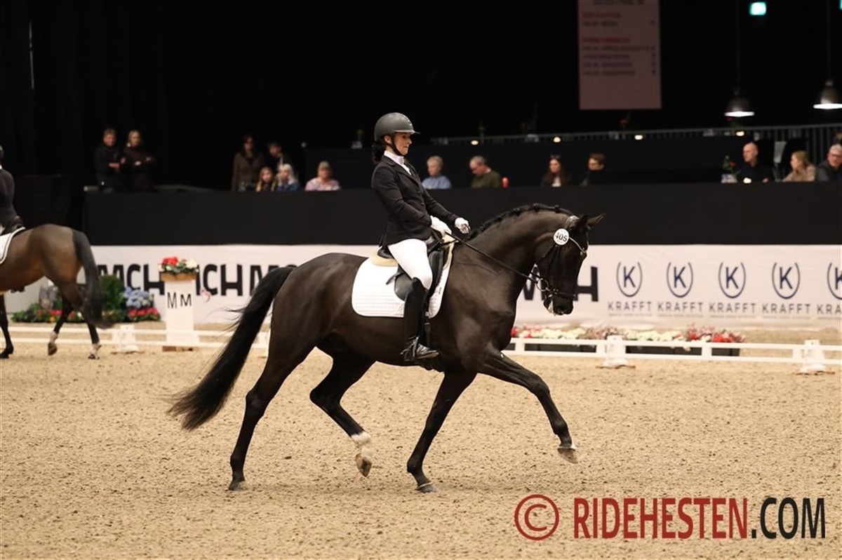 – Jeg synes, han har været virkelig god. Egentlig har han jo haft lidt af et rytterproblem, fordi jeg ikke har prøvet at ride derinde før. Den første dag var jeg selv virkelig nervøs og fik slet ikke redet med. Det afspejlede resultatet så også, men det fik vi rettet lidt op på anden dag. Men jeg er fuldstændig tilfreds med resultatet og også, at jeg gjorde det, fordi jeg kunne jo ligeså godt have fået en professionel rytter til at ride ham, men jeg synes bare, det var så stor en oplevelse at være med, når nu man selv har avlet hesten.
