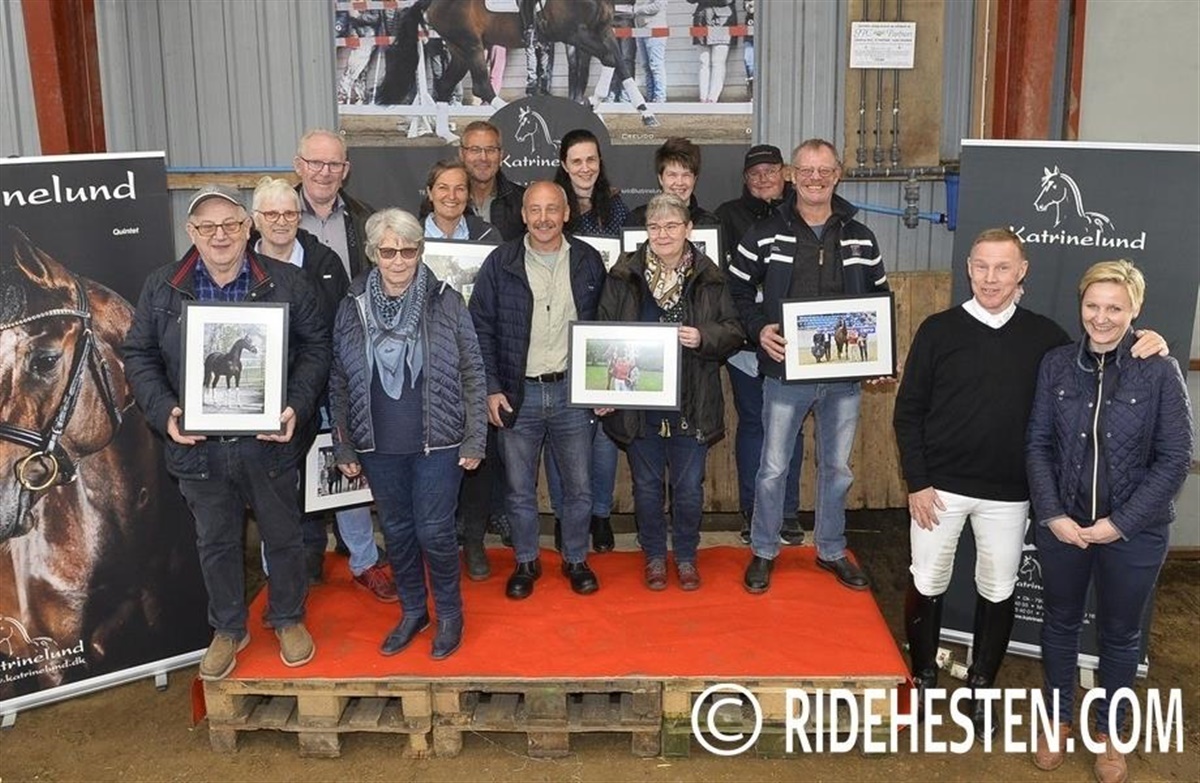 Trine Udklit Sørensen (midt i forreste række på billedet) for opdræt af ”Årets 2-års dressurbetonede hoppe 2018 i DV”, Diva Holmklit efter Hesselhøj Donkey Boy /De Noir.