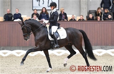 Placeret som nummer to bliver det Rally Von Rosing e. Revolution / Tailormade Temptation (opdr. Maria Von Rosing). I sadlen i dag var Simone Blomme Rasmussen, der formåede at vise hesten frem til 87.000. Hingsten fik blandt andet 9 for galop, og så var det de 8,8 i kapacitet der afgjorde det mellem 2. og 3. pladsen.