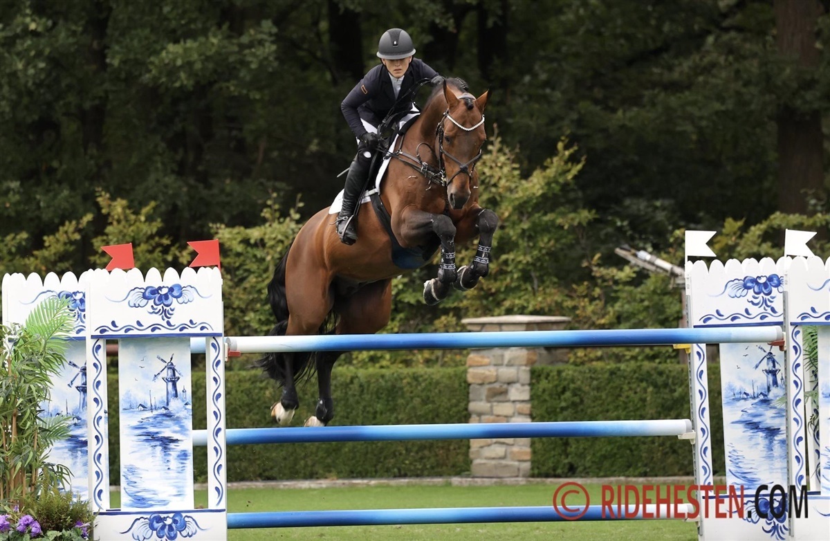 Første af de to ekvipager, der skulle ud på banen med de 140 cm høje spring, var Ida Mundberg Hansen og Mundberg's Sandrino Boy. De red fejlfrit i begge faser af den indledende klasse, og var lige netop hurtige nok til at ride sig ind i placeringerne. Parret blev nemlig nummer 12 her på førstedagen af stævnet.