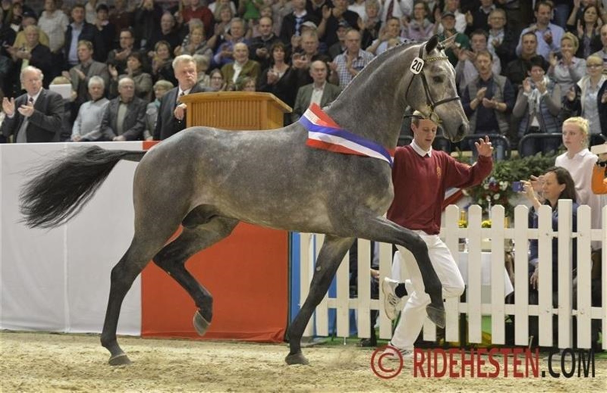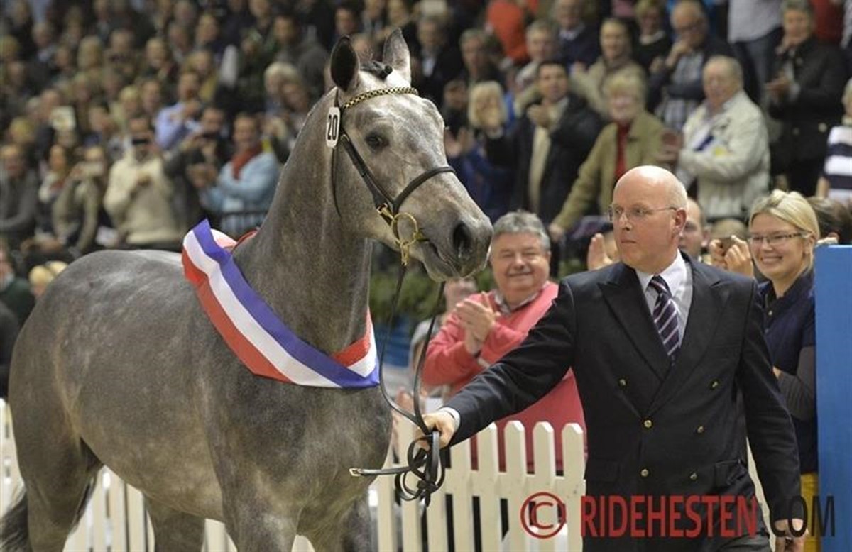 Nå, Karina Christiansen nu har din kollega i Holsten Dr. Thomas Nissen vist vejen: I dag løb han æresrunde med fløjhingsten i forbundet! Noget der ikke tidligere er set i Holsten. Det blev en jubelafslutning, da forbundet efterkom publikums krav og satte kat. 20 Charleston på fløjen. - Det er mange år siden vi har haft en fløjhingst af den kvalitet! Sagde Thomas Nissen i sin beskrivelse af hingstene i præmieringen. Og så fik ejerne overtalt ham til at løbe en æresrunde med hingsten til publikums jubel. Jo det var en fest i dag i Holsten, hvor fløjhingsten blev solgt for 300.000 euro og forbliver i Tyskland.