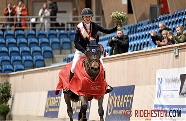 Vinderen af kat II stor tur 110 cm blev Karoline Sloth Kjær på Bjerregårds Qlimax, som vandt med to fejlfri runder og en overbevisende tid på 25,38 sekunder i en klasse, hvor vi skal helt ned på tiendepladsen for at finde en udenlandsk rytter på resultatlisten.