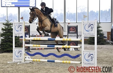 Noona Wildfang Linde på Townhead Lakita blev vindere af children stor tur, hvor springene er 115-120 cm høje. Med to nulrunder og tiden 34,25 havde de Cecilie Kjær på Aagaardens Elina lige i hælene, som sprang fejlfrit med tiden 34,86 i omspringningen.