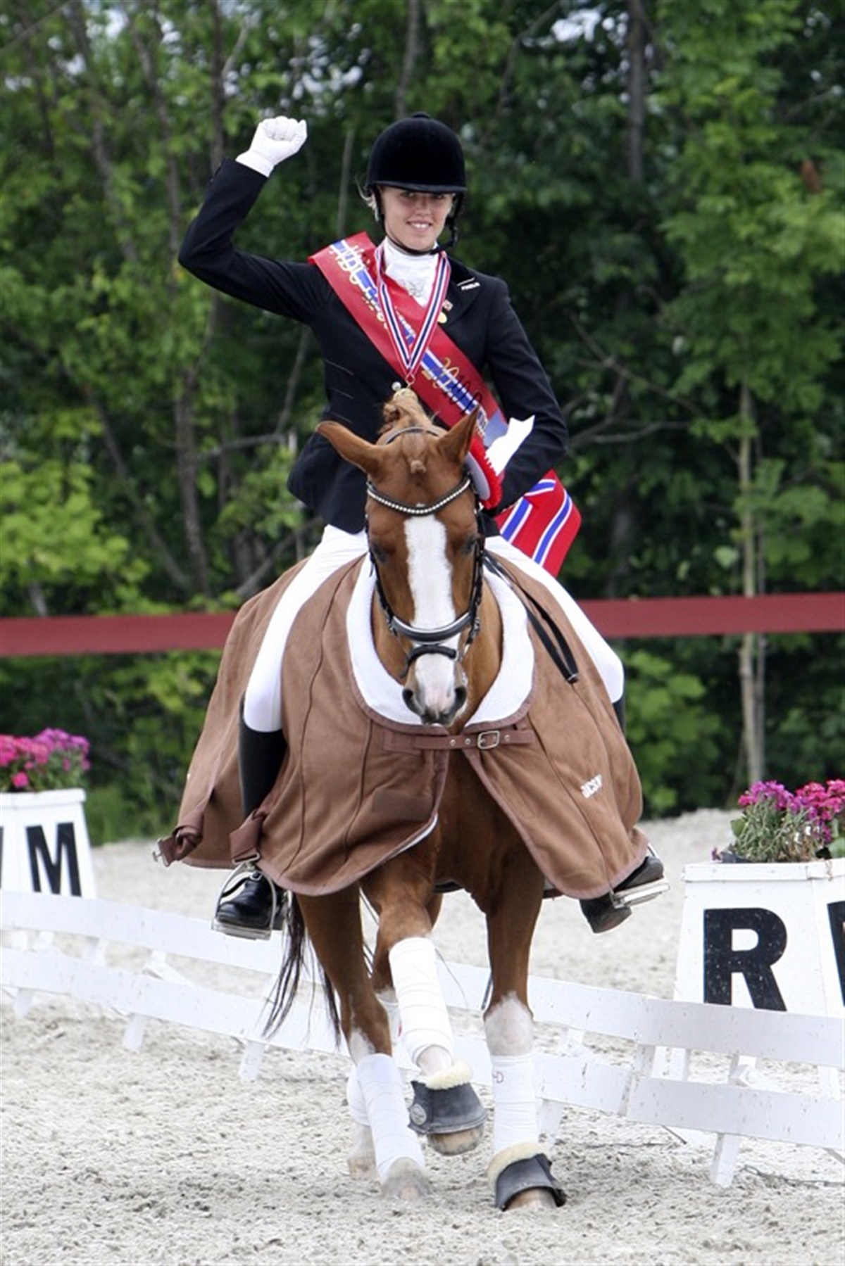 Så fik Danmark også individuelle dressurmestre i både pony kat. I og II. Landstræner Vibeke Degn Andersen kan være meget stolt af sine ponypiger, der har klaret sig forrygende i Drammen; først guldmedalje for hold og dernæst også individuelle medaljer. Lørdag blev blev Anne Tange og ponyen Tim nordiske mestre for kat. I og som om det ikke var nok, så vandt Sabrine Barnekow/Vermon sølv, Sofie Hougaard/Dornick-Son vandt bronze, mens fjerdepladsen gik til danske Caroline B. Schmidt/Campari W. Helt forrygende dansk succes! Simone Barnekow og Bohemo Geum vandt guldet for kat. II og Sara Veronica Raimondi/AJ Golden Jant fik bronze, mens Olivia Lysgaard/Simon blev nr. 4. Igen en fantastisk flot indsats af de dygtige danske dressurponypiger. /TBJ.