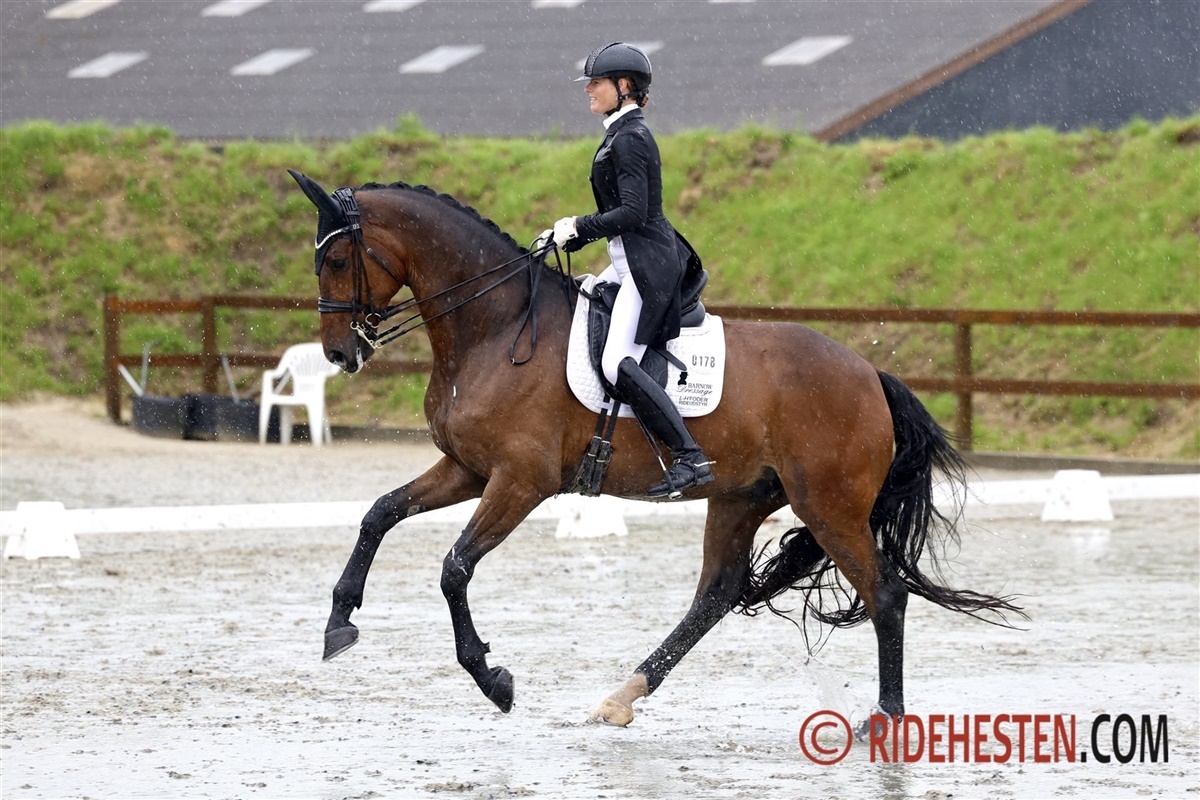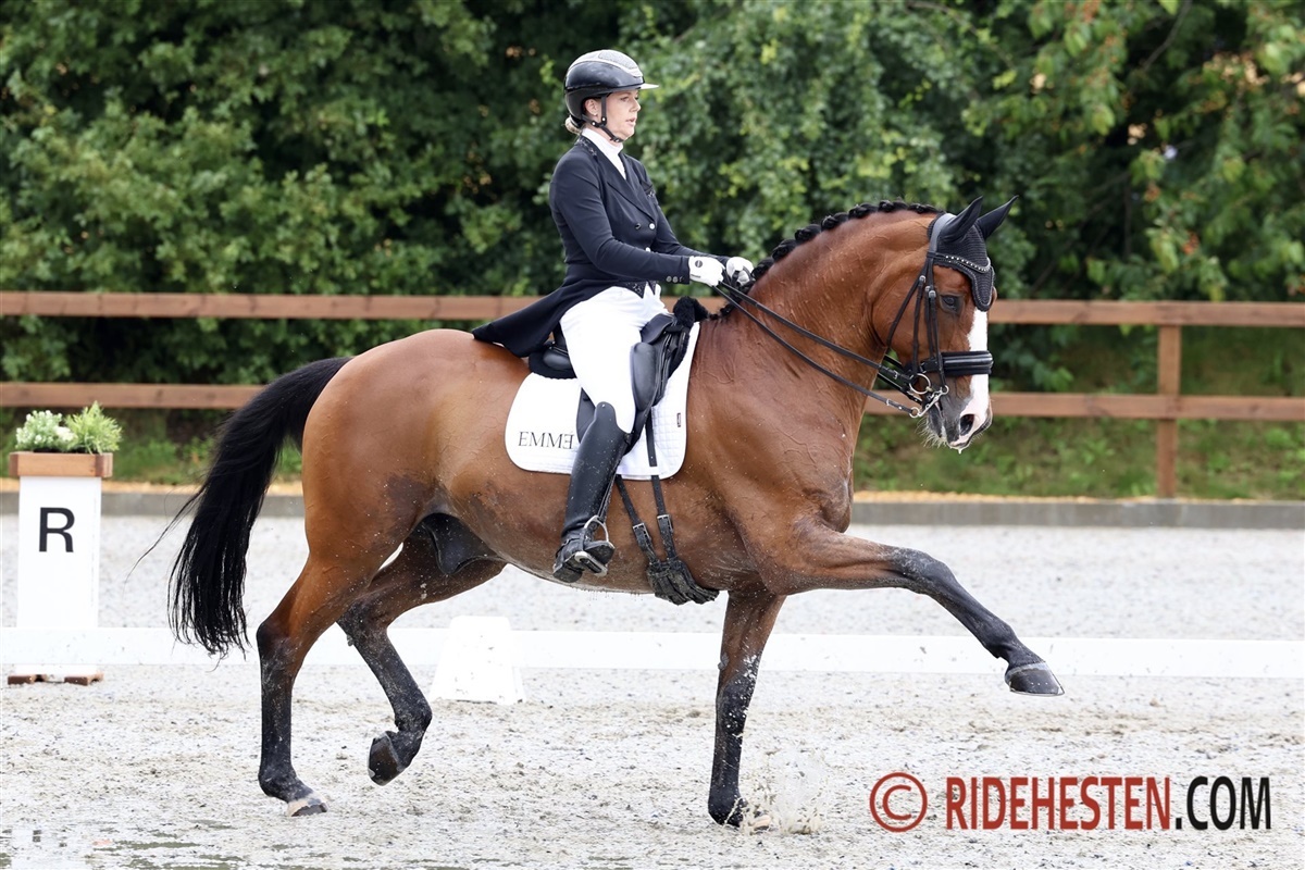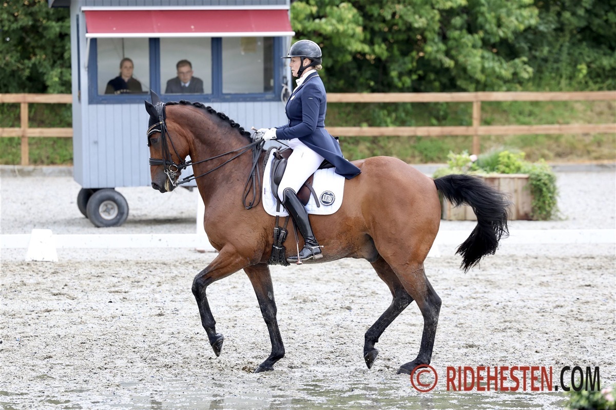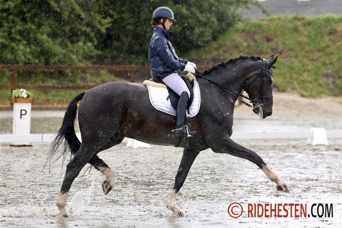 Søndag formiddag gik anden afdeling af Bundgaard Byg Cup i gang, og med en vejrudsigt, der lovede noget mere tørvejr, var der gode udsigter for ekvipagerne, der kunne se frem til at ride deres Intermediare kür på en tør bane. Susanne Barnow og Skovdals Dexter var altså heller ikke til at komme forbi for konkurrenterne i dag, og kunne dermed kalde sig vinder af klassen med 74,083%. Da Ridehesten spurgte Susanne, hvordan det havde været at ride ind på Dexter på hjemmebane, svarede hun følgende: – Jeg var faktisk meget i tvivl om, hvorvidt jeg skulle ride, fordi det netop var på hjemmebane. Det er altid mere svært på hjemmebane, men Dexter var bare helt fantastisk. Han var en ægte kammerat på banen, også i går, hvor regnen silede ned. Han vippede ikke med et øre, og det føltes som om han bare nød vores ture, hele vejen rundt. Han er en helt fantastisk hest, så det har været en skøn oplevelse med ham.