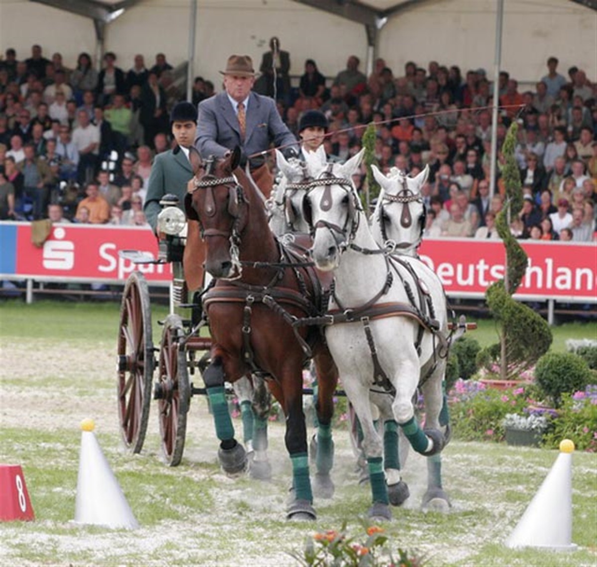Ingen af de to danske deltagere kom til start i forhindringskørselen, som var verdensmesterskabet for firspandskørsels sidste disciplin. Knud Jørgensen, som skulle først i ilden af de to, kunne under opvarmningen konstatere, at to af hans heste ikke var rengående. Kun 2 min. inden Ole Buch Jensen skulle ind lidt senere i klassen havde han samme negative oplevelse, at en af hans heste heller ikke var i orden. Dermed var begge danske ekvipager desværre ude af spillet. Den meget tætte kamp om den individuelle guldmedalje faldt ikke som forventet ud til fordel for hollandske Ysbrand Chardron som efter dressuren og maratonstrækningen førte mindre end en forhindringsfejl foran belgieren Felix Marie Brasseur. Belgieren der kørte umiddelbart inden Ysbrand Chadron var fejlfrit både på tid og på forhindringerne, og da Ysbrand Chadrons ene hest veg ud på forhindring nr. 13, faldt bolden ned af den kegle der marker om en forhindring er passeret fejlfrit eller ej. På samme måde måtte Sveriges Thomas Eriksson sige farvel til sin foreløbige bronzemedalje og overlade den til Christoph Sandmann fra Tyskland. Holdkonkurrencen blev vundet af Tyskalnd foran Belgien og Holland.