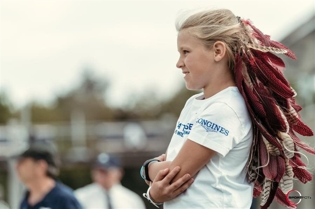 – Jeg har altid elsket at se toprytterne ride, så min familie og jeg tog til Prague Play Offs i 2018 og det var her jeg så Dani for første gang, og jeg elskede hendes fjer, fortæller den 10-årige belgiske pige Febe Abeels, da Ridehesten spørger indtil hvorfor hun har valgt at pryde sit hår med fjer, præcis som den internationale toprytter Danielle Goldstein.