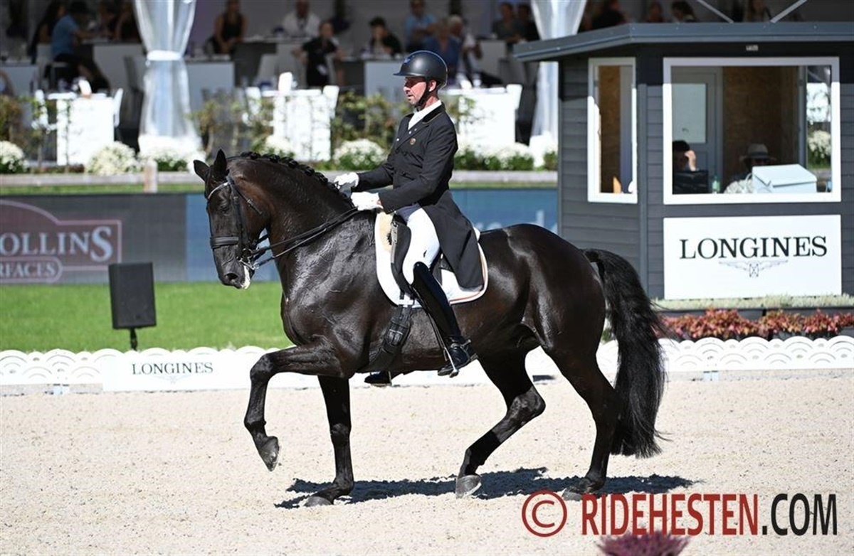 Vinderen af den indledende Grand Prix i fredags, svenske Maria von Essen sluttede på andenpladsen med sin 12-årige oldenburger Invoice e. Jazz/ Ferro og en score på 76,200%. Spanske Borja Carrascosa og den 11-årige westfaler Sir Hubert NRW e. Sir Heinrich/ Florestan I besatte tredjepladsen med 75,630% og avancerede dermed fra en 14. plads i den vestlige liga til en ottendeplads.