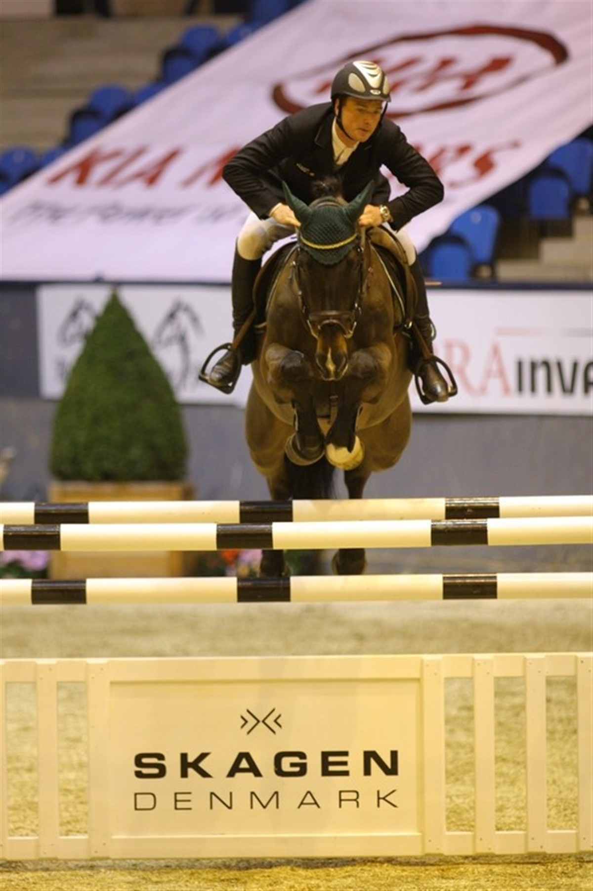 Det var de bedste ryttere fra de 2 forudgående Grand Prix kvalifikationer der mødtes i dagens Grand Prix finale ved JBK Horseshows og banens sværhedsgrad var da også tydeligt sværere. Banebygger Bo Bak Andersen havde på forhånd regnet med at 10 ryttere ville klare den til omspringningen. Det kom ikke helt til at holde stik, måske fordi banens allerførste forhindring voldte en del ryttere problemer, der i blandt danske Torben Frandsen og Michæl Aabo der begge ville have haft en flot nulrunde - hvis det da ikke havde været for Kia Motors forhindringen. I omspringningen var der lagt op til skarp konkurrence og top underholdning for publikum, med 7 ryttere der alle red for at få andel i klassens 160.000 præmiekroner og den flotte Brenderup Horseline trailer. Foruden stævnets flyvende hollænder Wout-Jan van der Schans, verdensranglistens nummer 17 - svenske Rolf-Göran Bengtsson, danskerne Thomas Sangaaard, Marie Louise Horstmann og Kristian Skovrider, var det hollænderne Tom Brinkmann og Roosje Brouwer. Kristian Skovrider red en imponerede runde i en tid der endte med kun at være 4 hundrededele langsommere end Rolf-Göran Bengtsson. Desværre for Kristian kostede tiden også en nedrivning, der resulterede i en flot tredjeplads. Den 46-årige svensker Rolf-Göran Bengtsson red tydeligt for at vinde på den kårede avlshingst Casall La Silla. Med en skarp linieføring og høj fart opnåede han en nulrunde i den imponerende tid 34.56 sek. Det slog imidlertid ikke hollandske Roosje Brouwer ud, hun satsede voldsomt og faktisk var hun fejlfri i en hurtigere tid, indtil sidste forhindring, hvor hesten ikke fik sat ordentligt af og ryddede det meste af forhindringen og dermed chancen for at vinde. Thomas Sandgaard var sidste rytter og han valgte klogt at satse på “det sikre“ og gå efter en nulrunde og de 32.400 kr. som andenpladsen udløste. Heldigvis for Thomas var det et rigtigt sats og han red en flot nulrunde og kunne inkassere 32.400 gode danske kroner.