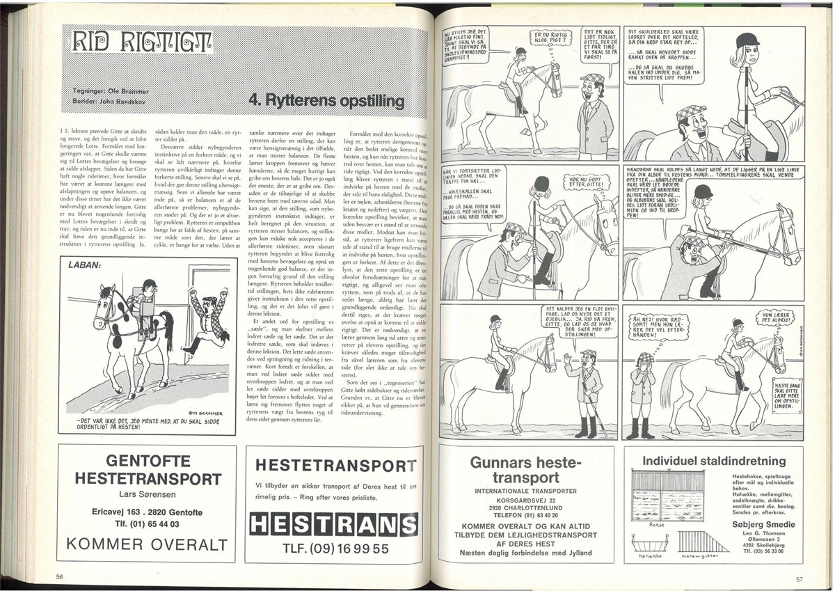 I januar 1979 lancerede magasinet Ridehestens forgænger, Hippologisk Tidsskrift, tegneserien Rid Rigtigt lavet af berider John Randskov i samarbejde med Ole Brammer, som stod for tegningerne. Her mødte man bl.a. rytteren Gitte og hesten Lotte. Det var en populær og lærerig tegneserie, der blev bragt i bladet igennem flere år.