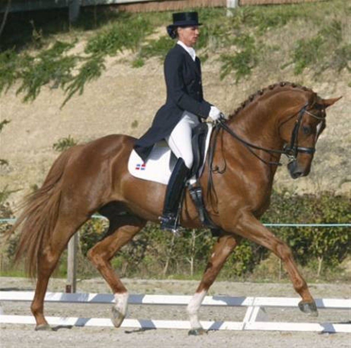 Ingen ringere end Carl Hester sidder nu på ryggen af den røde hannoveranerhingst Bernstein, der ejes af Yvonne Losos de Muñiz fra den Dominikanske Republik. Yvonne er begyndt at træne hos Carl og i Hartpury var det træneren, der startede hingsten i Grand Prix. Det blev til et flot resultat med 69,31% med næsten 4 procentpoints afstand til de næstplacerede. Sidste år vandt den dominikanske rytter bronze ved de panamerikanske lege, som afvikles på Intermédiaire-niveau, og har endnu ikke haft det store gennembrud med Bernstein i Grand Prix. Nu ser det ud til, at Bernstein er parat.