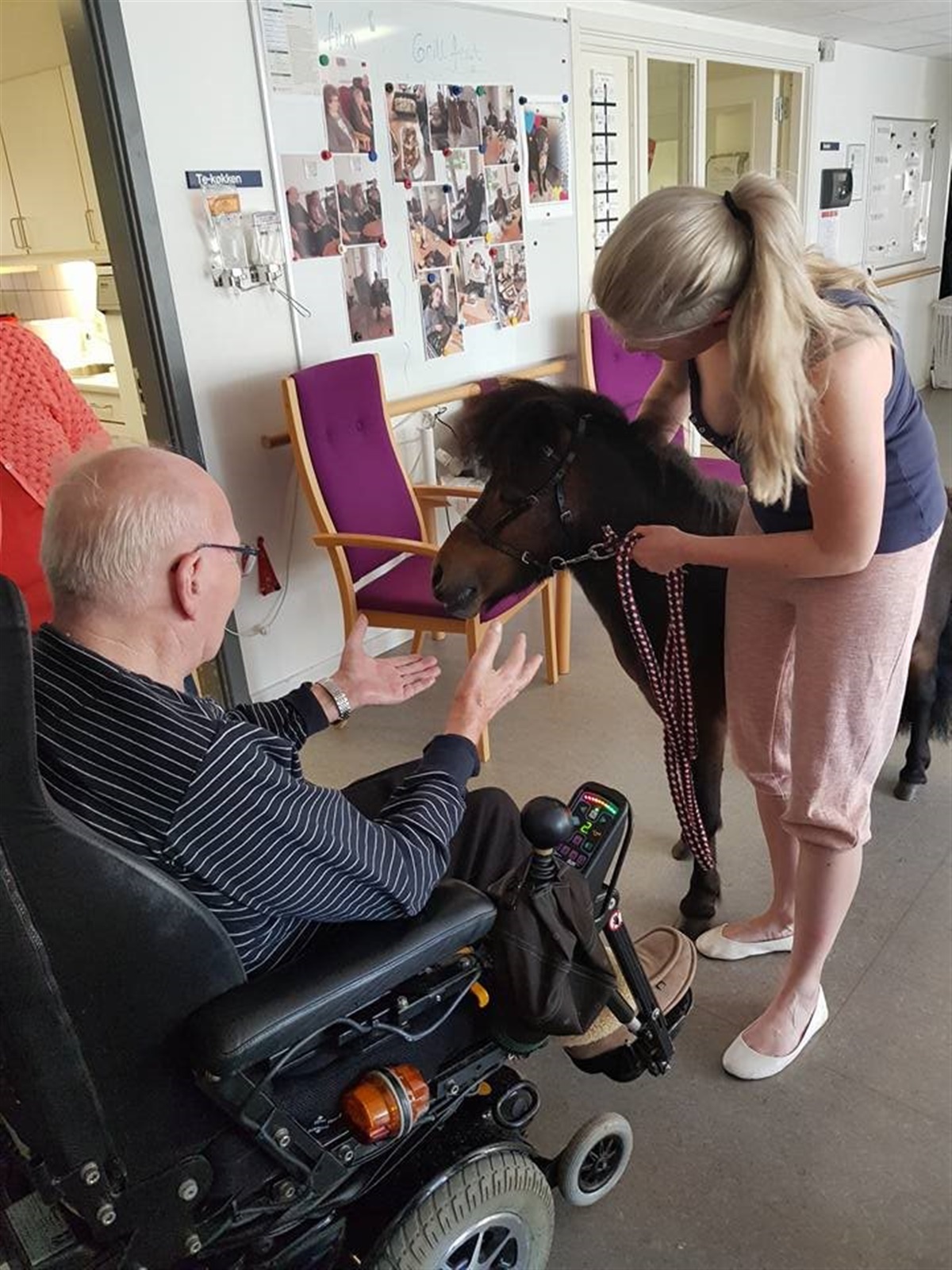 – Vi har flere gange oplevet, at de demente fortæller historier som personalet aldrig før har hørt. Derudover oplever vi at demente der har svært til smil og bevægelser, pludseligt sidder med smil fra øre til øre og nusser Rocko så godt som de nu kan, fortæller Elisa Jensen der ejer ponyen Rocko