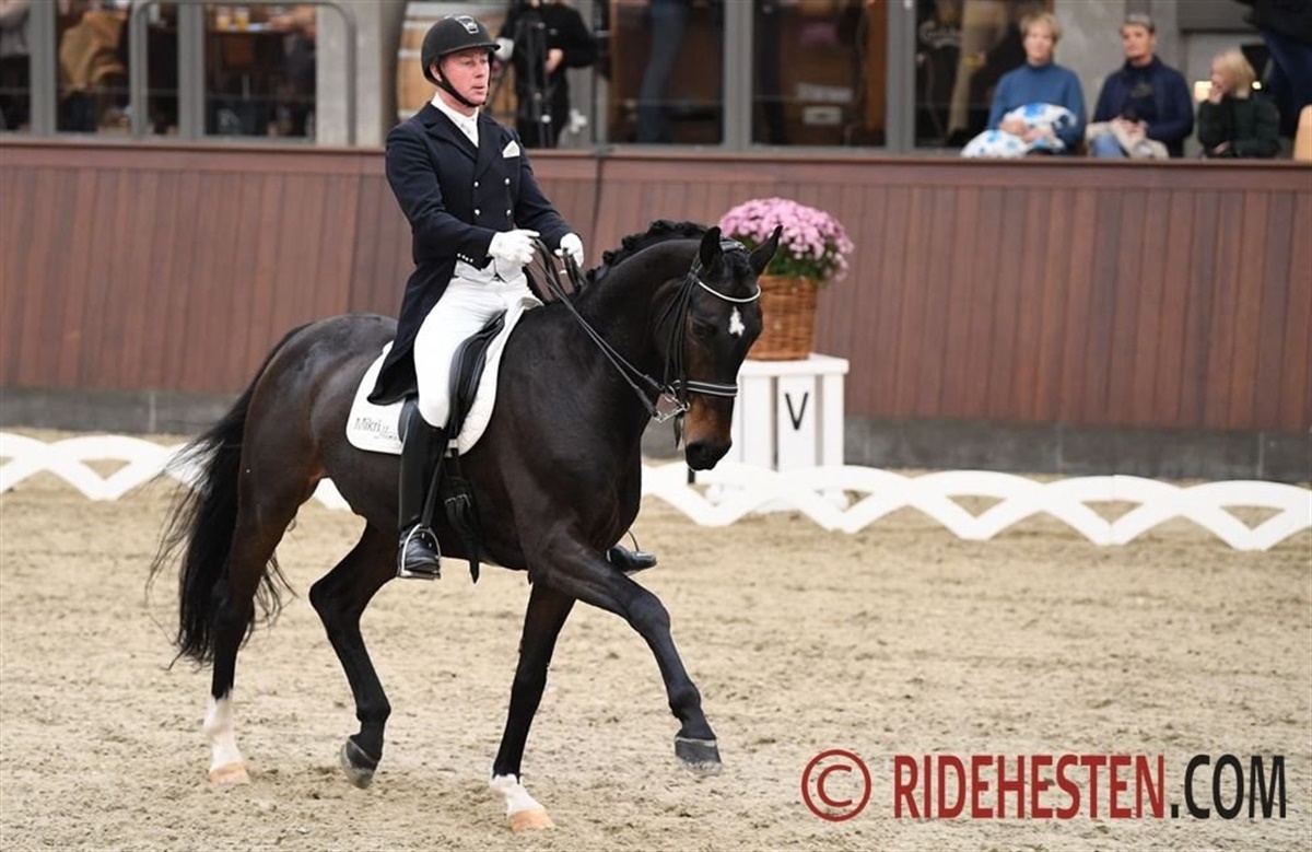 Berider Michael Søgaard leverede et meget overbevisende ridt med Slæbækgårds Santino e. Sir Donnerhall I/ Carano (opdr. Familien Himmelstrup), og da de hilste af, så det ud til at blive en ny føring i klassen. Desværre havde den 10-årige vallak pådraget sig et slagsår, der viste sig som blod på hvide sok, så ekvipagen blev diskvalificeret.