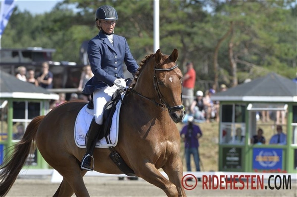 Anne Troensegaard/Litvinenko Sjælstofte e. Imperio og Bettina Jæger Jensen/Enjoy de Hus e. Valdez kom begge i finalen i Scandinavian Open for 6-års heste i dag. Det var lidt vanskelige betingelser for de unge heste på dressurbanen i dag, hvor flere lod sig påvirke af omgivelserne og blæsten, der ruskede i flag og blomster. 38 startende belv reduceret til 10 finalister. Vinder af kvalifikationen blev sidste års vinder af Scandinavian Open Revolution, en helt fremragende velgående søn af Skovens Rafael, opdrættet af Lena Nyström og redet til sejr af Anna Svanberg.