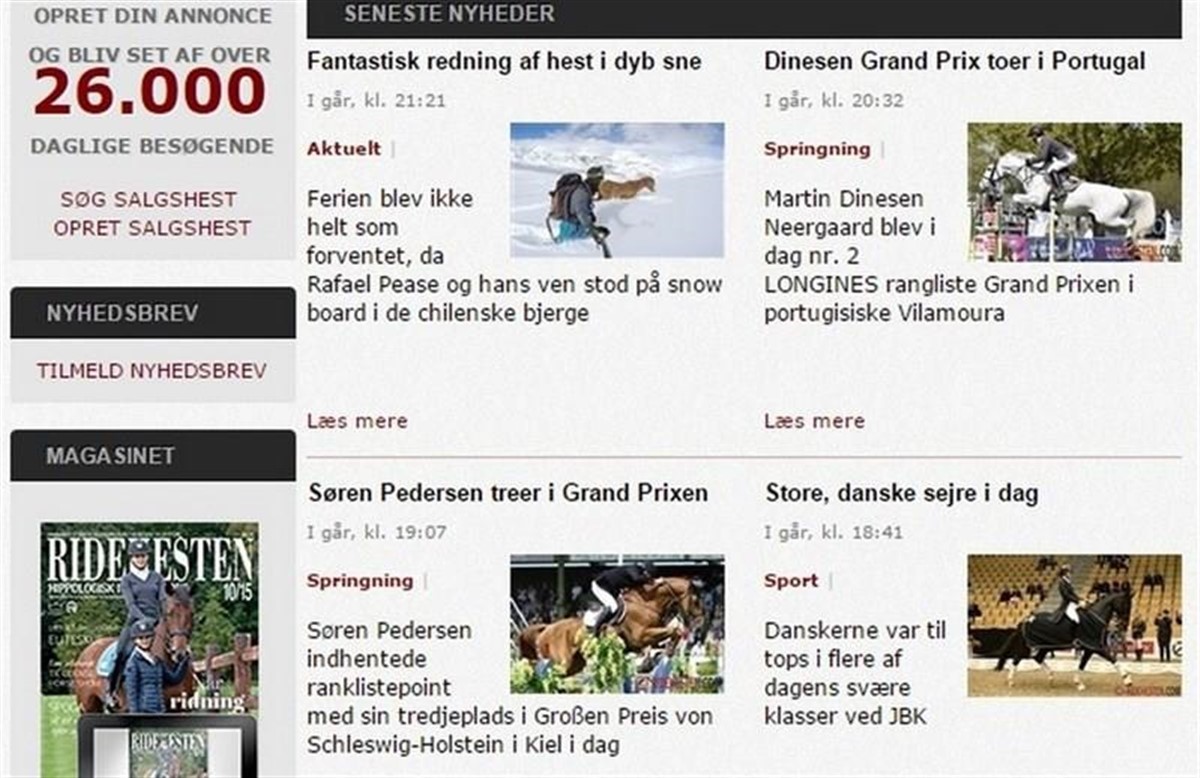 Fra fredag eftermiddag har de af nyhederne på Ridehesten.com med mere end et billede set en smule anderledes ud end tidligere. Er der flere billeder i en nyhed, kan de fordeles med flere store billeder ned igennem teksten.