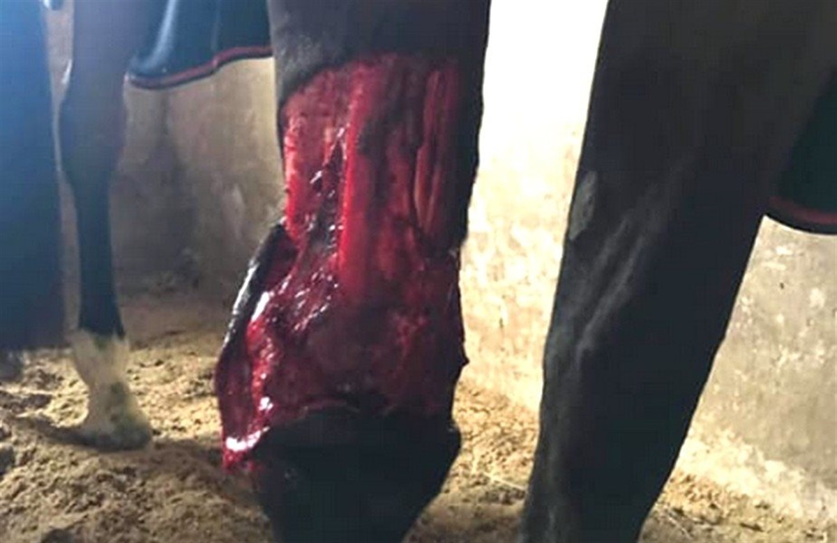 Familien Højer, der ejer hoppen, fik den straks indlagt på hestehospitalet, hvor den blev lagt ned og forsøgt syet, men det store, sammensyede sår gik op. Så blev Juicy Rock højre forknæ forbundet, men hun bed forbindingen af. Til sidst blev hun sendt hjem med beskeden om, at det ville komme til at tage tid, og der kunne ikke gives nogen garanti for, at hoppen ville blive andet end hyggehest fremover.